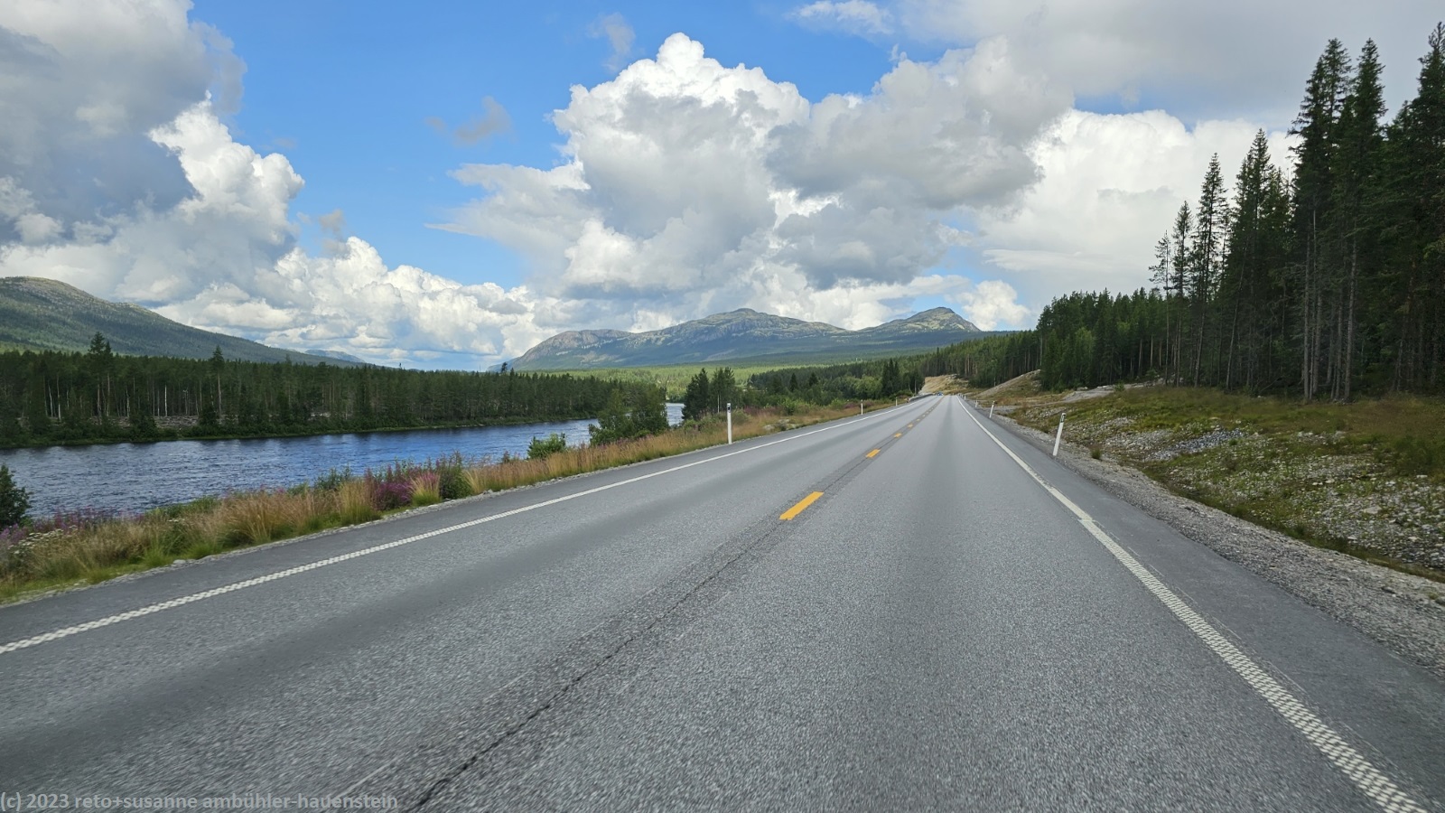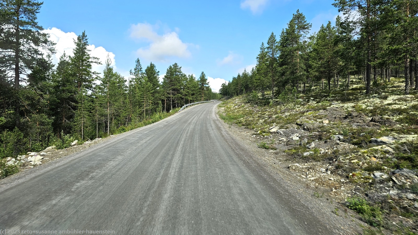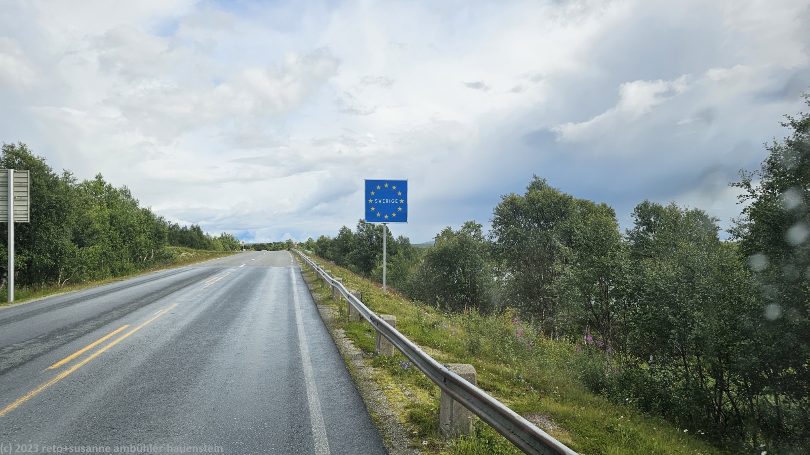 kurz nach 14 uhr setzen wir unsere fahrt fort. die strasse 31 führt uns durch eine ziemlich einsame gegend ostwärts richtung schweden. nach 40 minuten autofahrt überqueren wir die grenze, wenig später erreichen wir unser tagesziel fjällnäs.