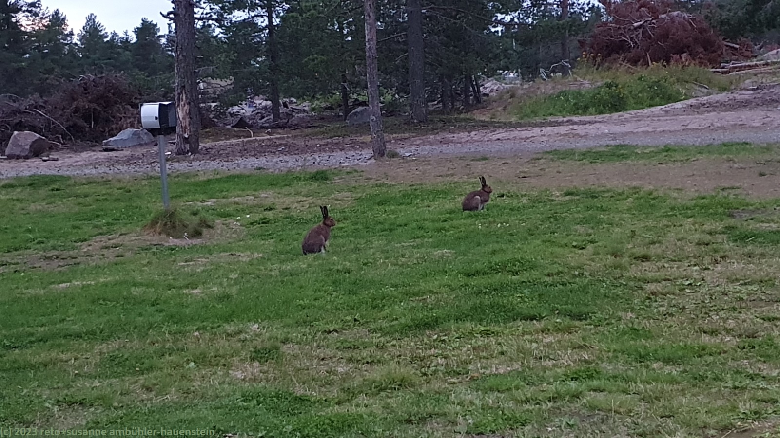 als sich der regen ausgetobt hat, bringen wir unser kajak wieder ins wasser und paddeln durch den kanal zurück zum ausgangspunkt. wir reinigen das kajak, packen das zubehör ins boot und verstauen es wieder im kayakomat. das hat wirklich hervorragend funktioniert. auf dem rückweg zum campingplatz kaufen wir im ICA noch einige lebensmittel ein. auf dem campingplatz verlängern wir unseren aufenthalt um einen weiteren tag und reservieren für morgen für zwei stunden die waschmaschinen. danach geniessen wir die sauna. das nachtessen essen wir im jogi, denn der wind hat wieder aufgefrischt. nun scheint zwar die sonne, aber draussen würde uns der stürmische wind das geschirr vom tisch fegen. nach dem abwaschen machen wir einen spaziergang über den campingplatz und begegnen mehreren wilden kaninchen.