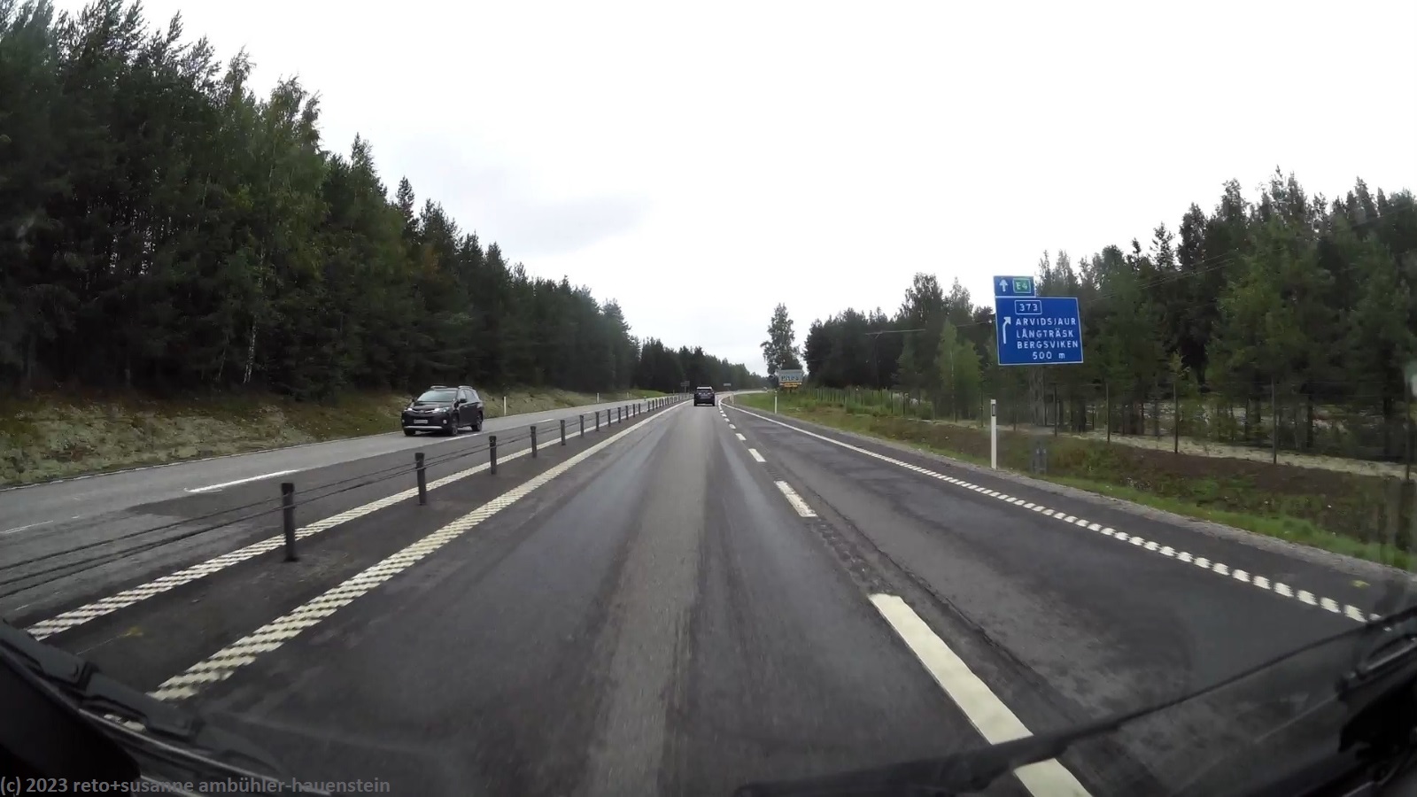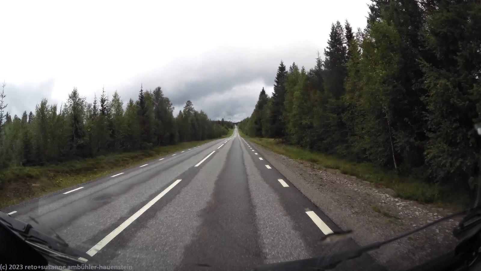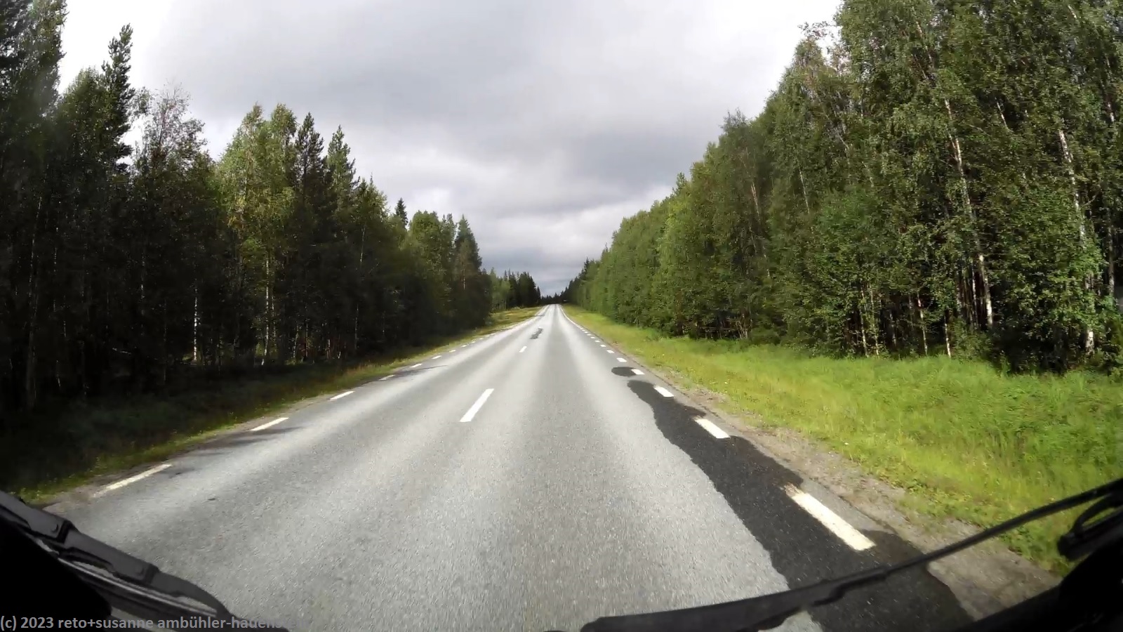 für einmal ist es meine frau, die am morgen etwas länger schläft und so ist es schon fast 9 uhr, als wir aufstehen. der himmel ist auch heute grau, aber der wind hat deutlich nachgelassen, so dass wir im freien frühstücken können. anschliessend packen wir zusammen und machen uns auf dem weg. bei der tankstelle am eingang des campingplatzes tanken wir noch unseren wagen auf, dann geht es los. wir folgen der E4 bis zum südlichen stadtrand von piteå, dann wechseln wir auf die strasse 373. wir fahren über die beiden tunnel, durch die wir gestern gepaddelt sind. die fahrt verläuft superangenehm, wir haben die strasse weitgehend für uns alleine. zwei oder drei mal müssen wir sie mit einigen rentieren teilen, ansonsten geht es ungehindert vorwärts. im weiteren verlauf fahren wir durch einen wald, in welchem hunderte von bäumen vom sturm von letzter woche umgeworfen wurden. es sieht fürchterlich aus. die aufräumarbeiten sind so weit fortgeschritten, dass die strasse wieder frei ist, aber neben der strasse liegen die bäume kreuz und quer. kurz nach 14 uhr erreichen wir storuman.