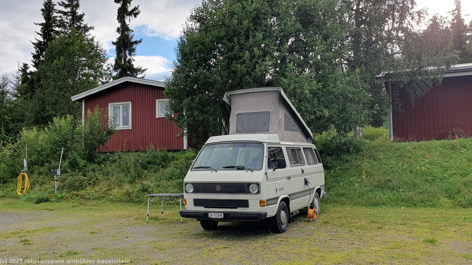 auf dem camping tärnaby waren wir schon einmal, siehe tagebuch vom 31-jul-2008 und folgende. nun wird der campingplatz von einer deutschen dame geführt. sie empfängt uns freundlich, die formalitäten sind schnell erledigt. wir entscheiden uns für einen platz nahe des servicegebäudes.