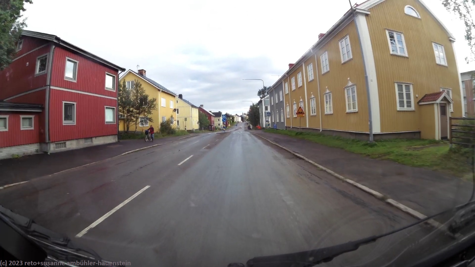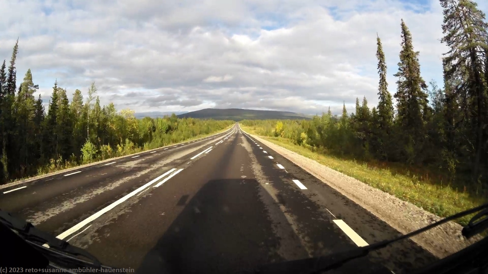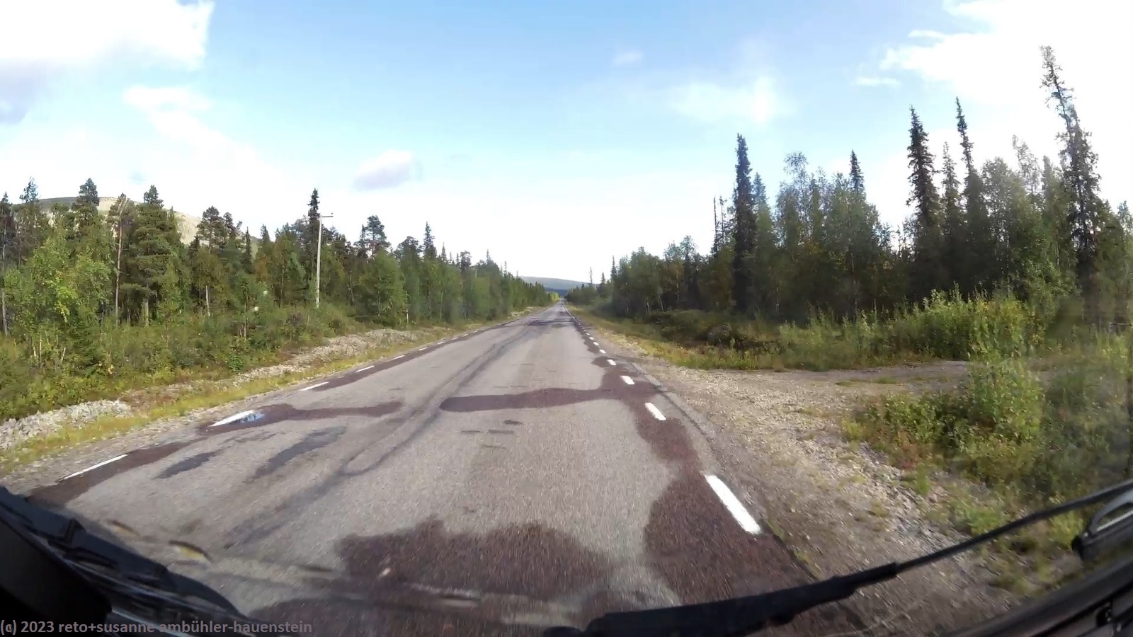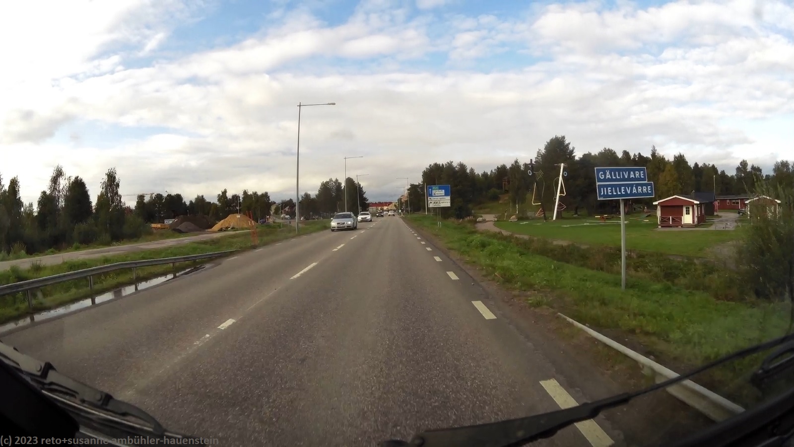 ohne weitere formalitäten verlassen wir den landeplatz. im jogi ziehen wir die wanderschuhe aus und fahren zur fjällstation. wir holen unsere butter aus dem kühlschrank, dann machen wir uns auf den weg richtung kiruna. bis stora sjöfallet ist die strasse ein albtraum. manchmal ist es schwierig, zwischen den schlaglöchern genügend zusammenhängenden asphalt zu finden. in stora sjöfallet tanken wir unseren wagen auf und erfrischen uns mit kaffee und kuchen. wir sind die einzigen gäste im restaurant. auch auf der strasse sind wir weitgehend mutterseelen alleine. der abschnitt bis zur E45 ist deutlich angenehmer zu befahren. die strasse nach ritsem ist mit 142 km gemäss einer broschüre "die längste sackgasse schwedens". auf der E45 treffen wir auf eine handvoll autos, die fahrt verläuft äusserst angenehm. obwohl der himmel mit viel blau eigentlich freundlich aussieht, regnet es immer wieder ganz leicht. kurz vor 17:30 uhr fahren wir durch gällivare. das neue stadtzentrum sieht immer noch nach grossbaustelle aus. die weiterfahrt bis kiruna verläuft genau so entspannt wie bisher. auch diese stadt ist gerade dabei, verschoben zu werden. das navi führt uns auf der E10 um die stadt. obwohl wir schon mehrmals auf dem campingplatz ripan übernachtet haben, erkennen wir die zufahrt erst auf den letzten metern wieder. um 18:45 uhr sind wir am tagesziel.