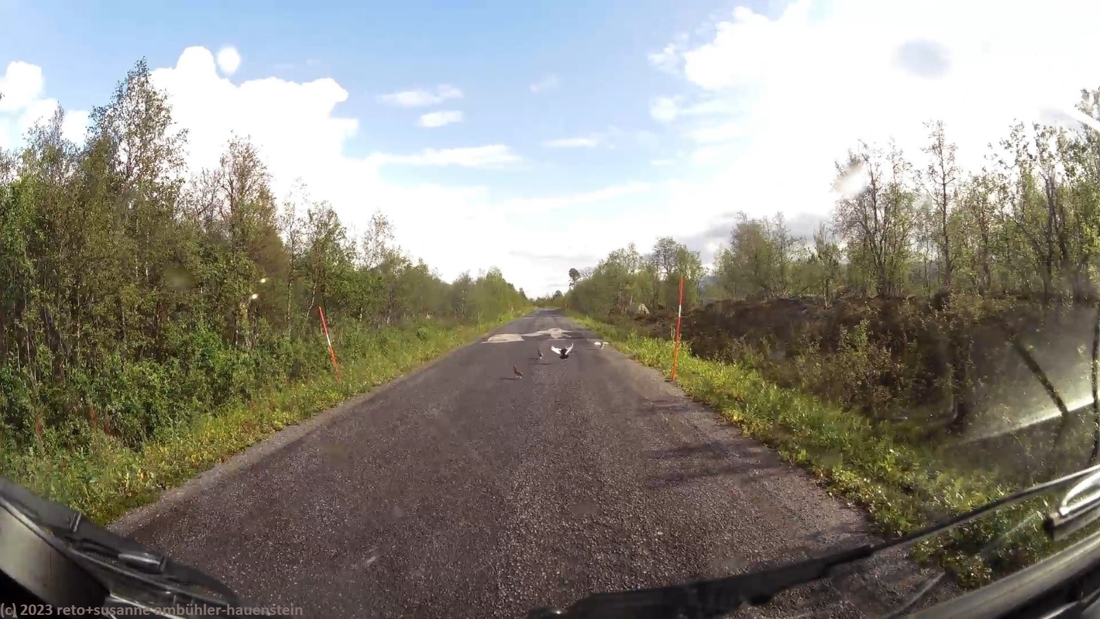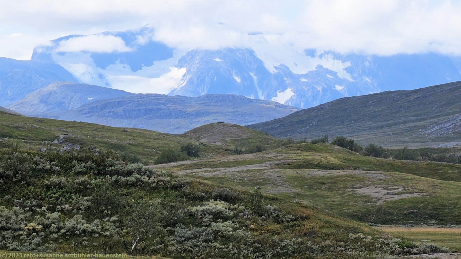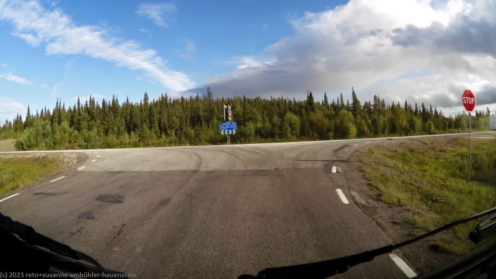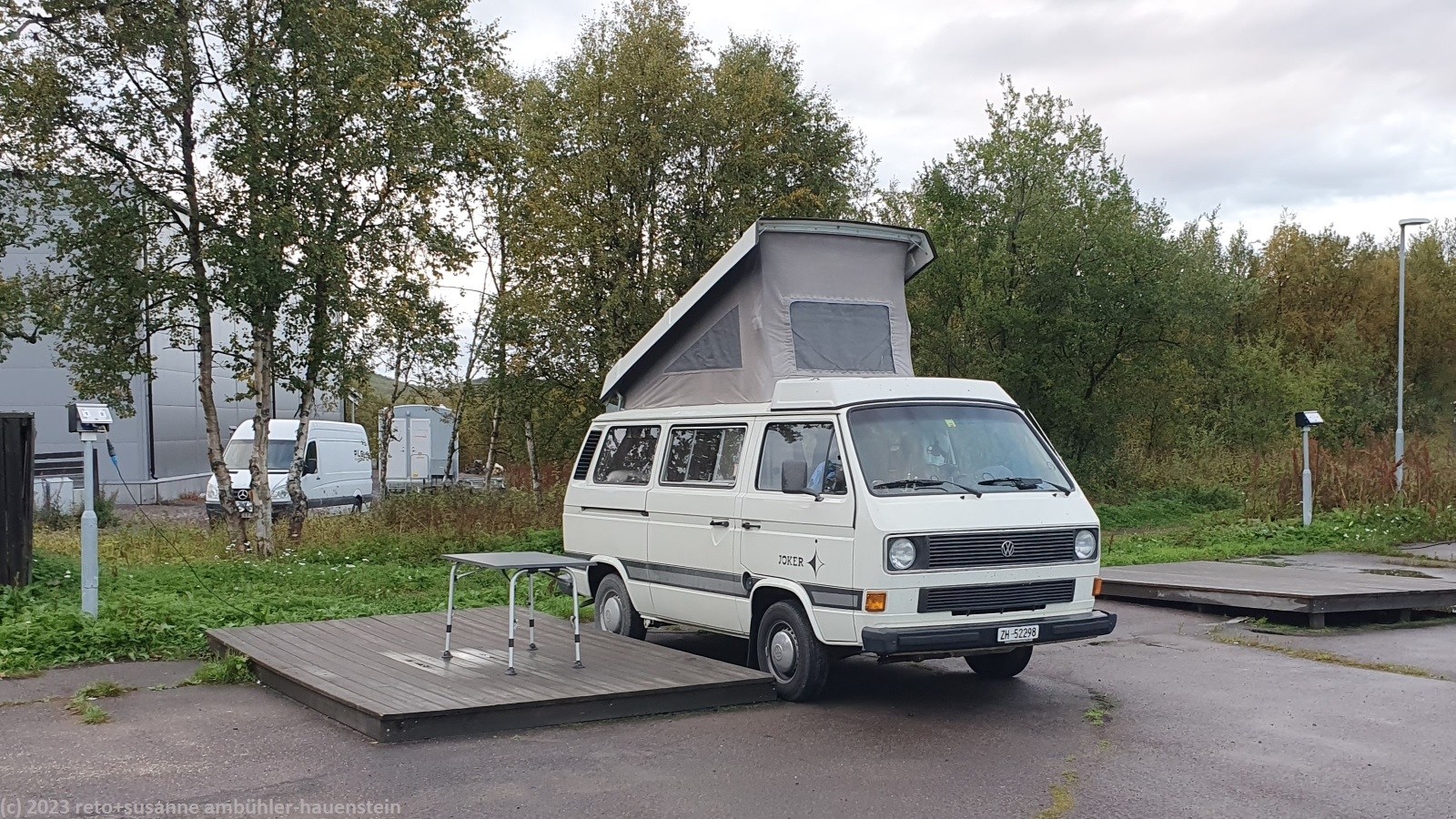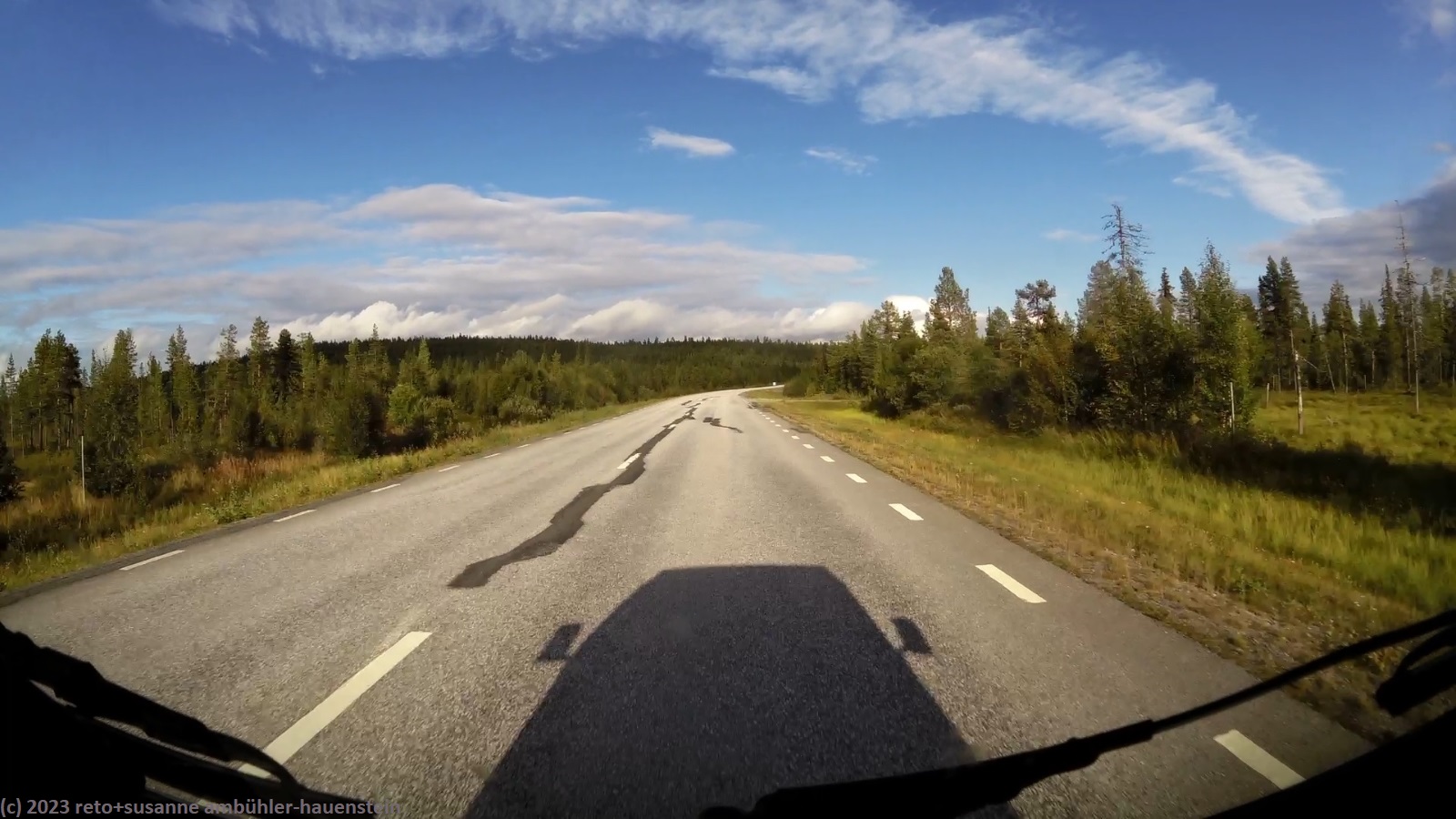 ohne weitere formalitäten verlassen wir den landeplatz. im jogi ziehen wir die wanderschuhe aus und fahren zur fjällstation. wir holen unsere butter aus dem kühlschrank, dann machen wir uns auf den weg richtung kiruna. bis stora sjöfallet ist die strasse ein albtraum. manchmal ist es schwierig, zwischen den schlaglöchern genügend zusammenhängenden asphalt zu finden. in stora sjöfallet tanken wir unseren wagen auf und erfrischen uns mit kaffee und kuchen. wir sind die einzigen gäste im restaurant. auch auf der strasse sind wir weitgehend mutterseelen alleine. der abschnitt bis zur E45 ist deutlich angenehmer zu befahren. die strasse nach ritsem ist mit 142 km gemäss einer broschüre "die längste sackgasse schwedens". auf der E45 treffen wir auf eine handvoll autos, die fahrt verläuft äusserst angenehm. obwohl der himmel mit viel blau eigentlich freundlich aussieht, regnet es immer wieder ganz leicht. kurz vor 17:30 uhr fahren wir durch gällivare. das neue stadtzentrum sieht immer noch nach grossbaustelle aus. die weiterfahrt bis kiruna verläuft genau so entspannt wie bisher. auch diese stadt ist gerade dabei, verschoben zu werden. das navi führt uns auf der E10 um die stadt. obwohl wir schon mehrmals auf dem campingplatz ripan übernachtet haben, erkennen wir die zufahrt erst auf den letzten metern wieder. um 18:45 uhr sind wir am tagesziel.