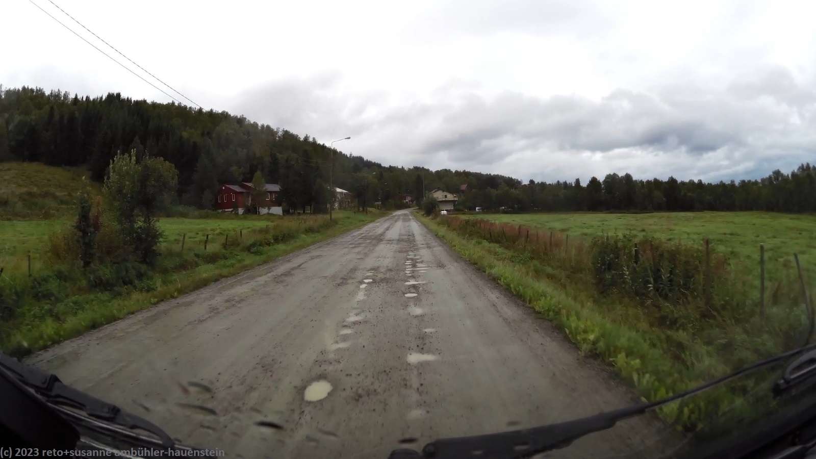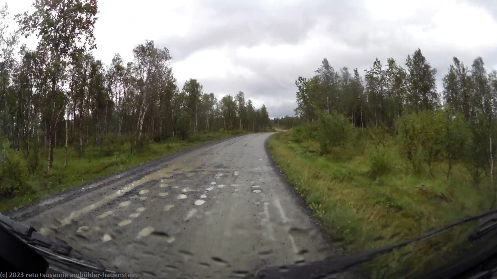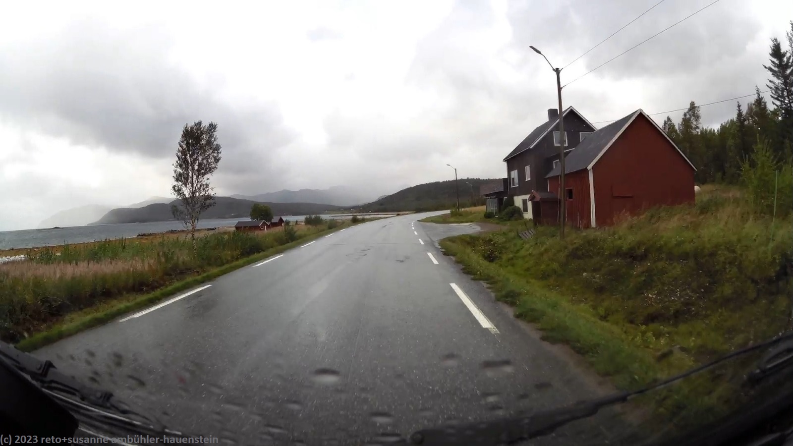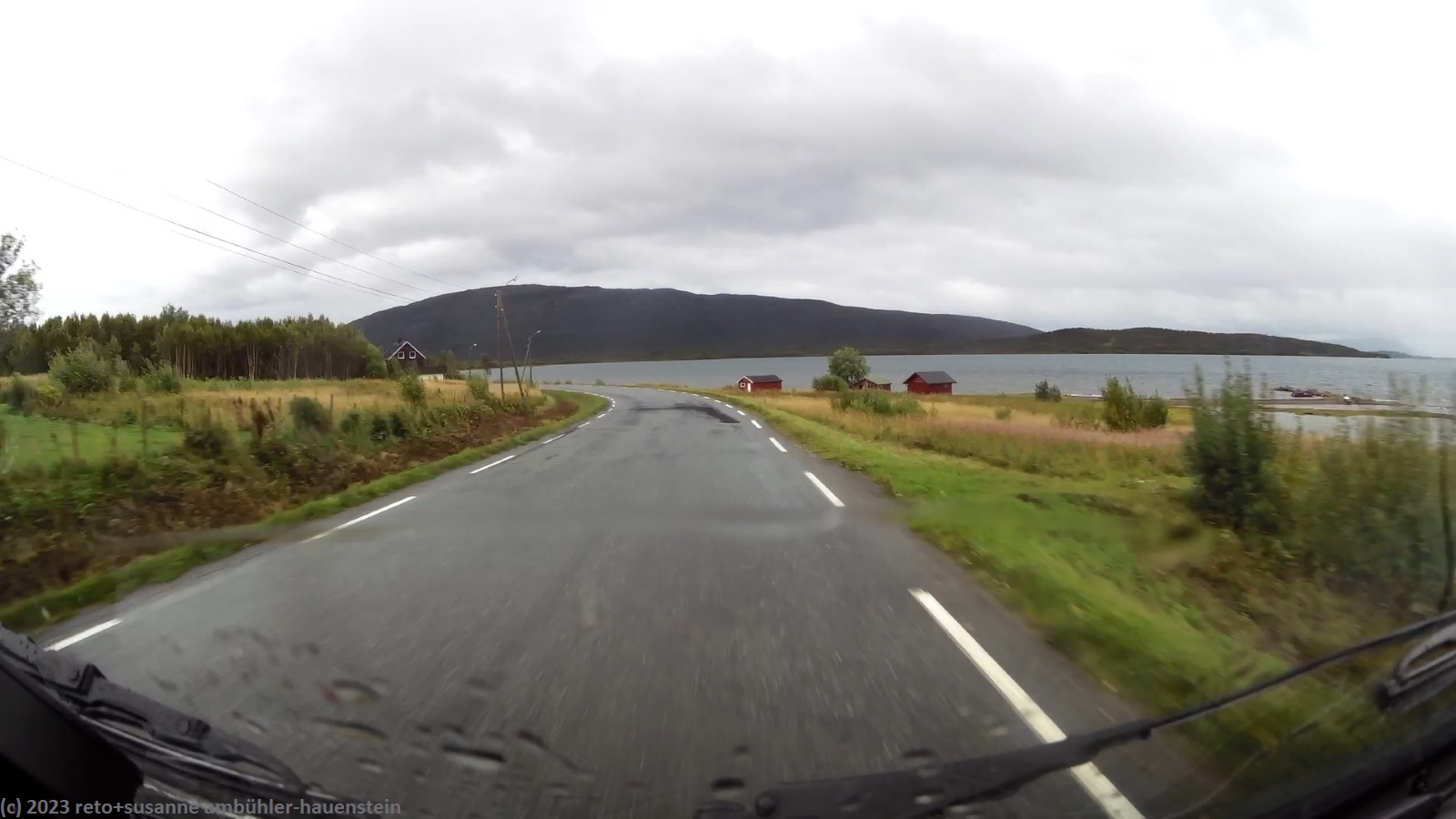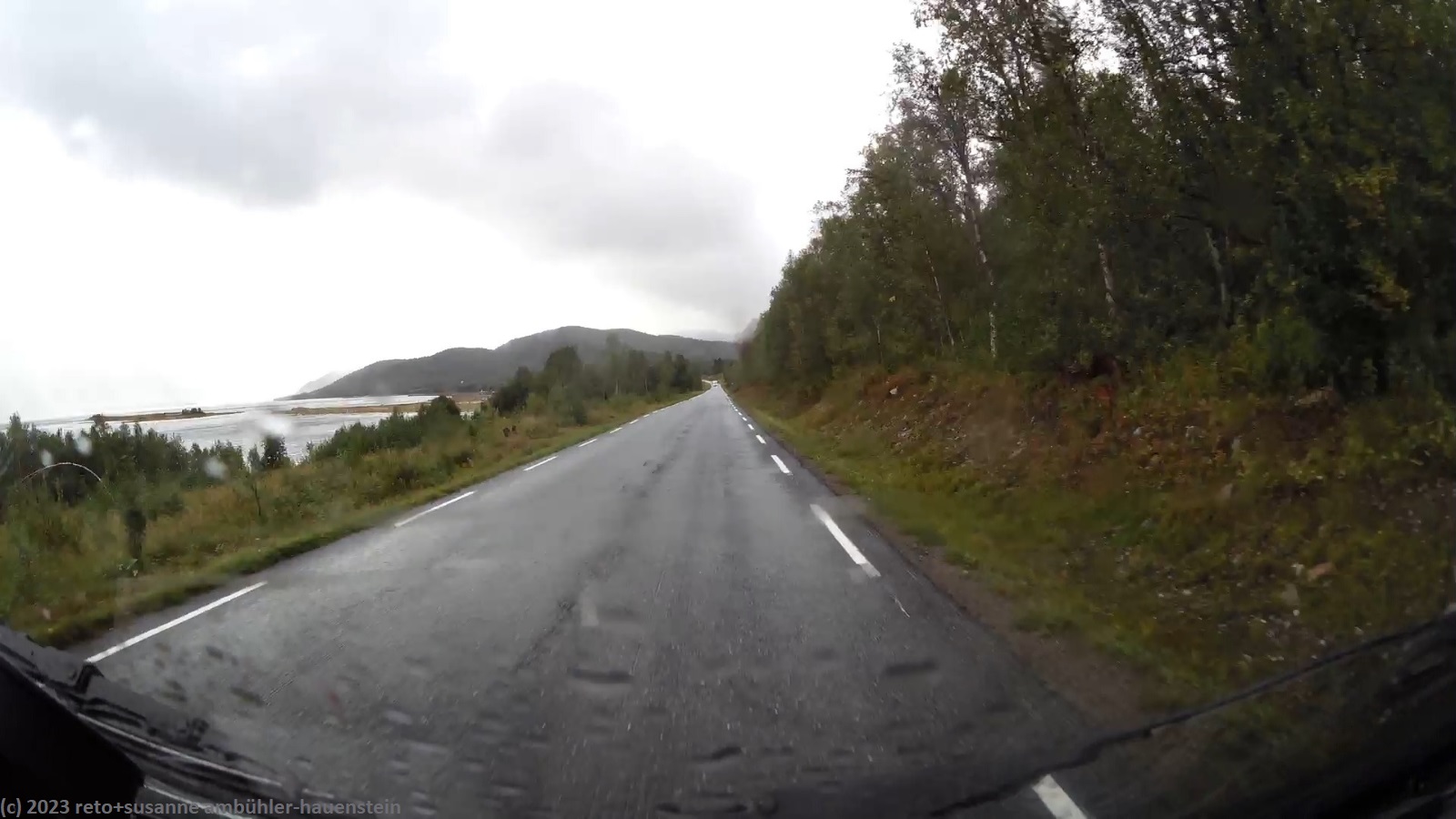 in der nacht hat es fast pausenlos geregnet, wenn auch mit variabler intensität. irgendwann haben wir das dach zugemacht. trotzdem war die eine ecke unserer matratze wieder nass. zuhause müssen wir versuchen herauszufinden, wo das wasser eindringt. wir schlafen bis gegen 9 uhr. nach dem frühstück fahren wir zum parkplatz des ånderdalen nationalpark am tranøybotn. dabei geht es - wie schon bei der anfahrt vorgestern - ein stück über die unbefestigte strasse 7856.