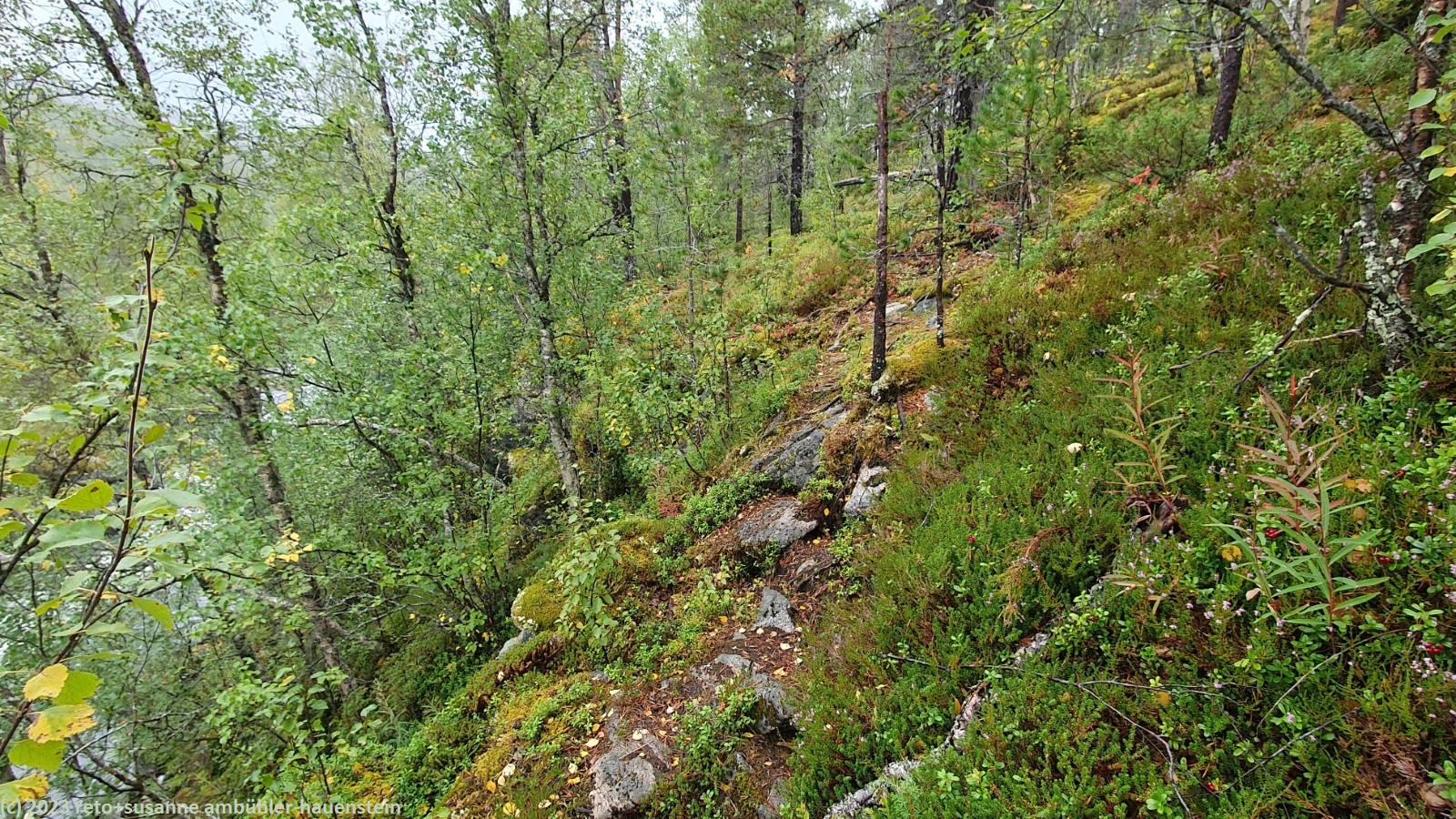 | farbenfroher waldboden | abschüssiger wanderweg entlang des ånderelva |