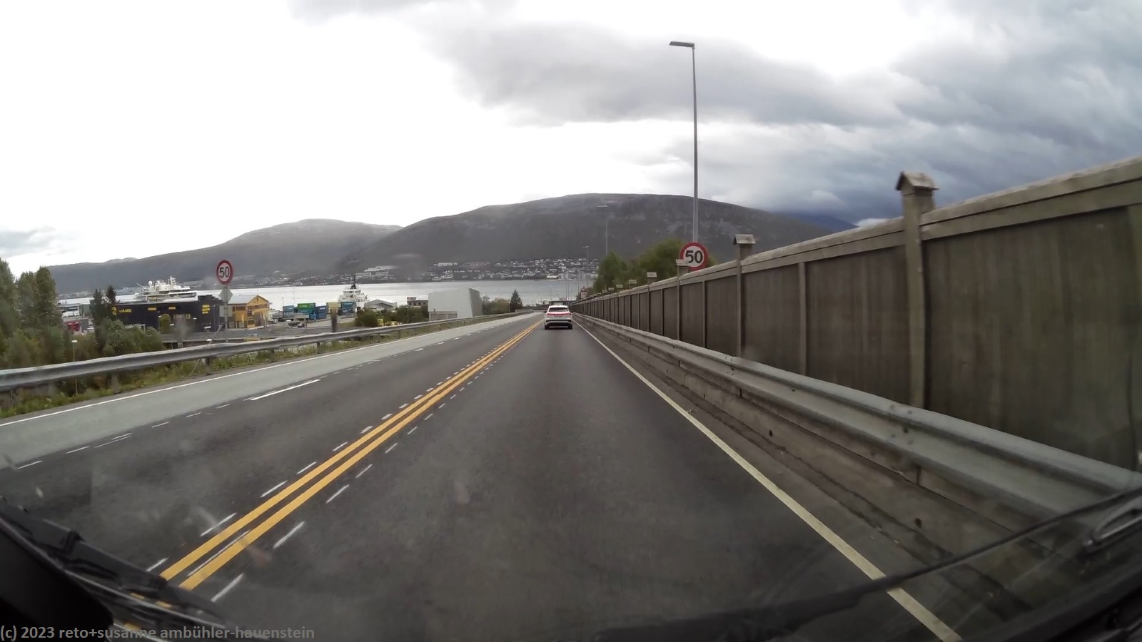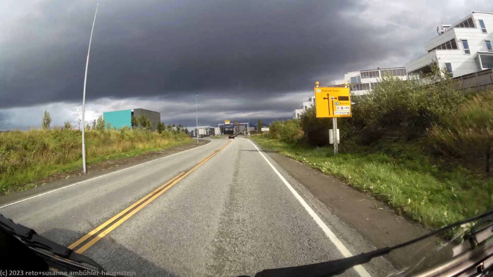 wir kaufen noch fehlende lebensmittel, dann geht es zurück zum campingplatz. ich führe die bücher nach, susanne liest. gegen 19 uhr geniessen wir das abendessen im jogi. draussen giesst es gerade wieder wie aus kübeln und ein ruppiger wind rüttelt an unserem wagen. das dauert aber nur kurze zeit. als wir unser geschirr abwaschen gehen, ist es bereits wieder trocken. auch der wind hat nachgelassen. es ist spürbar wärmer als während den vergangenen tagen. tromsø ist der nördlichste punkt unserer reise. wenn wir morgen nach skibotn fahren, ist das der anfang der heimreise. es bleiben uns aber noch fast drei wochen, bis wir zuhause sind - vorausgesetzt, es läuft alles nach plan. das klopfen bei unserem jogi bereitet uns etwas sorgen. es verschwindet zwar immer wieder, aber wenn es da ist, klingt es etwas beunruhigend.