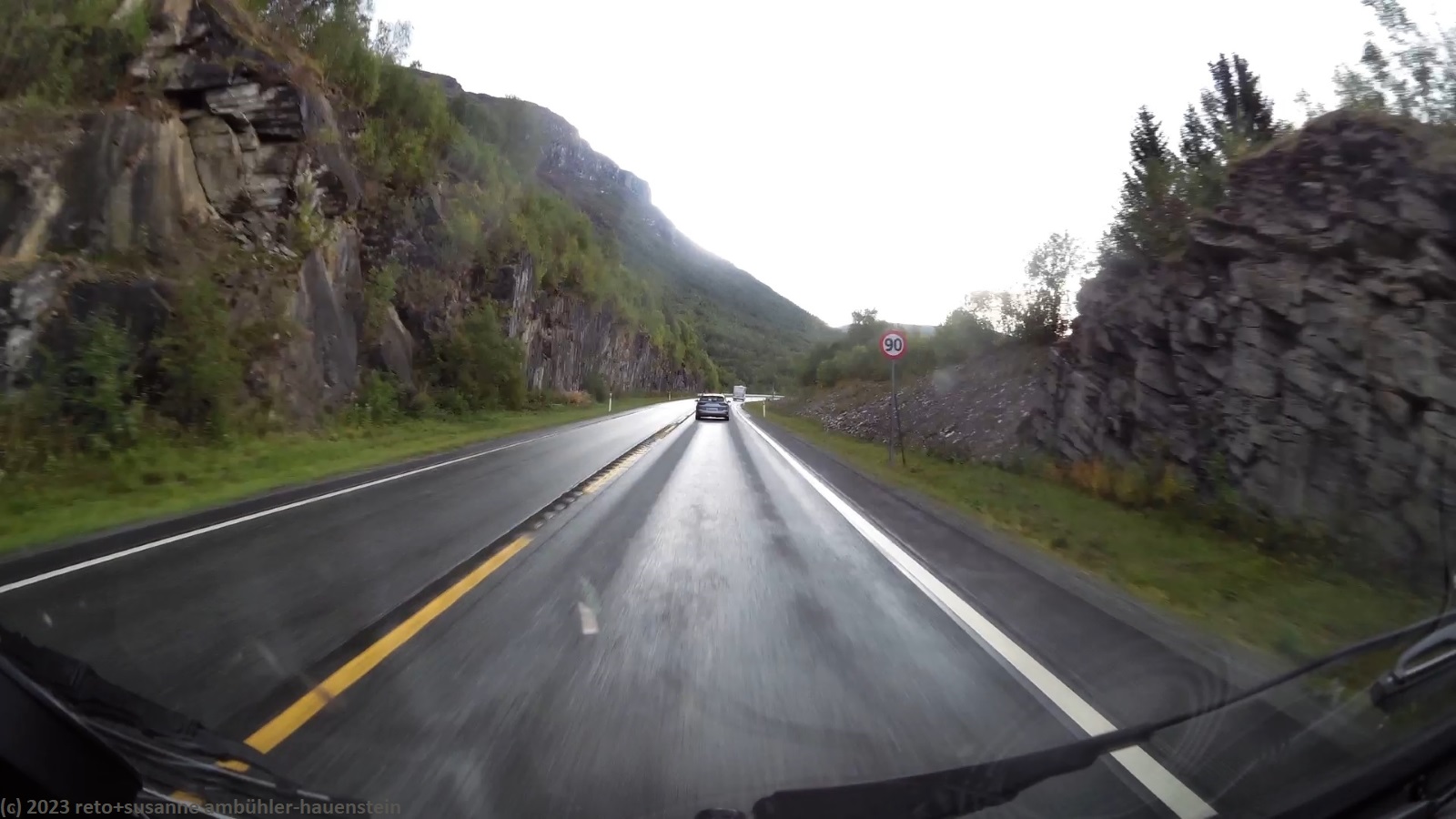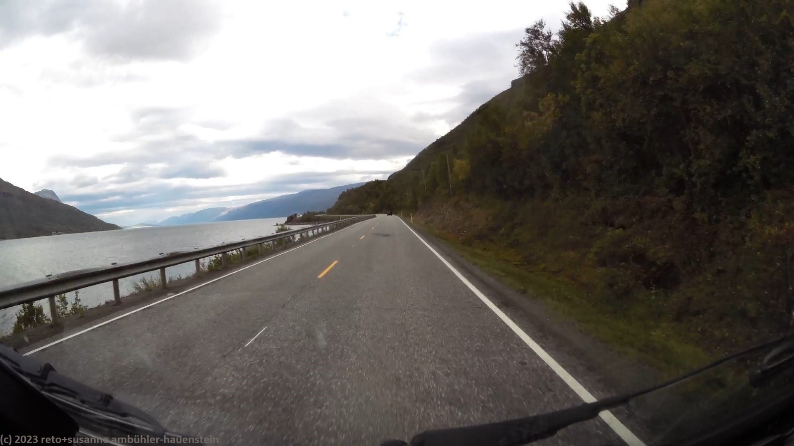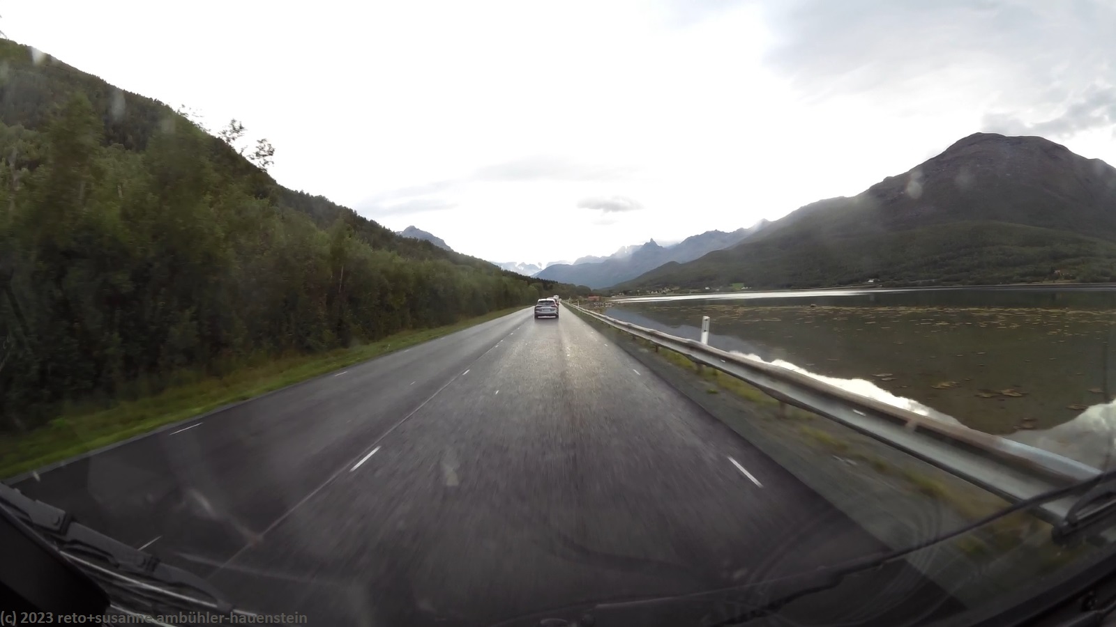 da es auch heute morgen regnet, müssen wir einmal mehr im jogi frühstücken. als wir um 10 uhr aufbrechen, ist es zwar trocken, aber noch ist der himmel sehr trüb. ausgangs tromsø kaufen wir einige lebensmittel und tanken unseren wagen auf, dann folgen wir der E8 entlang des balsfjorden. für einmal sind relativ viele autos unterwegs, was wohl daran liegt, dass heute samstag ist. aber selbst die womos sind mit der erlaubten höchstgeschwindigkeit unterwegs, so dass wir ganz gut vorankommen. während der fahrt scheint ab und zu die sonne, selten fallen regentropfen. am tagesziel finden wir den campingplatz erst im zweiten anlauf. dies liegt an den widersprüchlichen infos zwischen reiseführer und navi. der campingplatz ist zu unserer überraschung fast ausgebucht. wie sich herausstellt, findet dieses wochenende hier ein treffen des norwegischen camper clubs sowie ein konzert in der sporthalle statt. wir machen eine kurzwanderung bis zum nördlichen ende von skibotn, auf dem rückweg gibt es kaffee bzw. tee und ein stück kuchen in einem bistro. den abend verbringen wir im jogi. gegen 23 uhr schlüpfen wir unter die bettdecke.