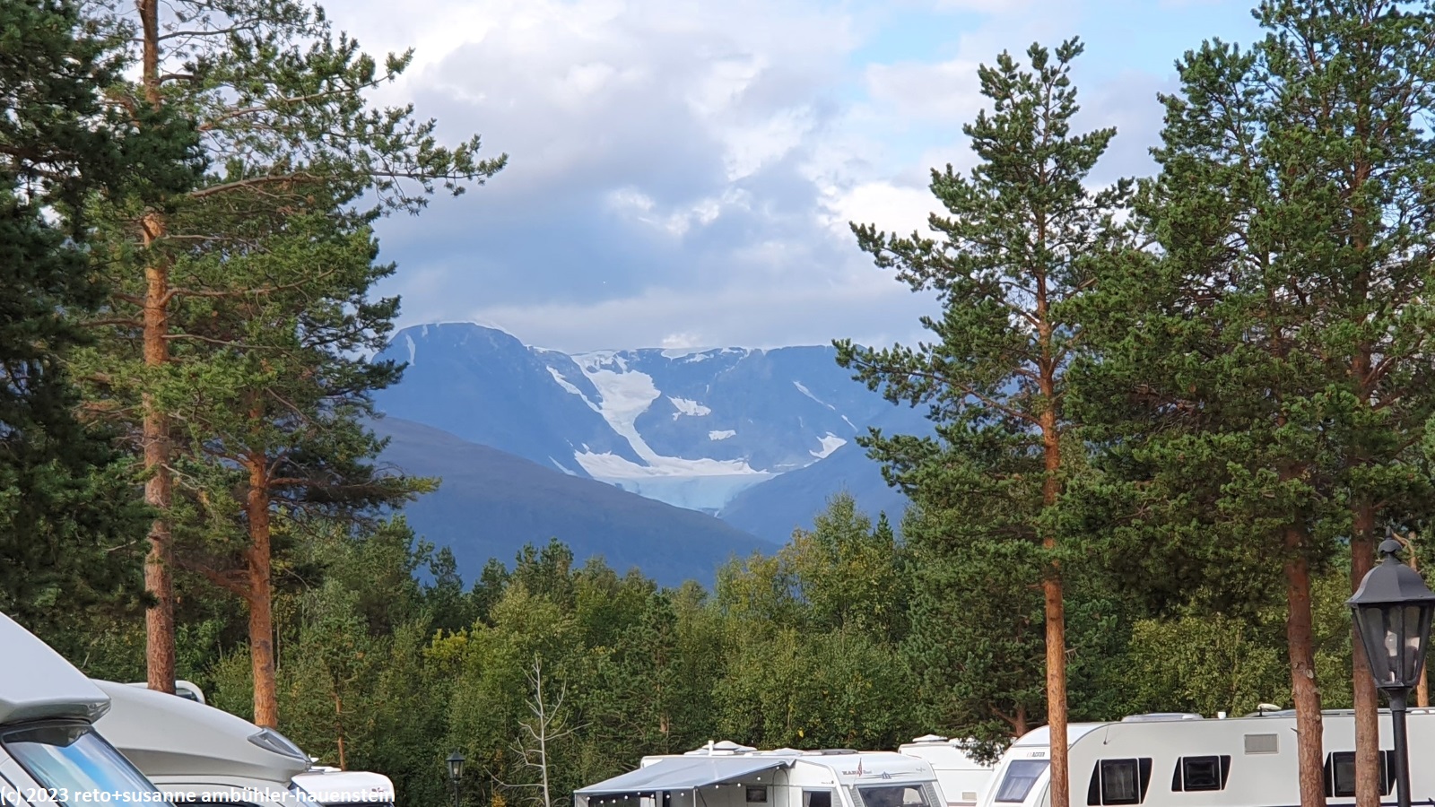 | blick vom olderelv camping auf die gletscher im westen | |