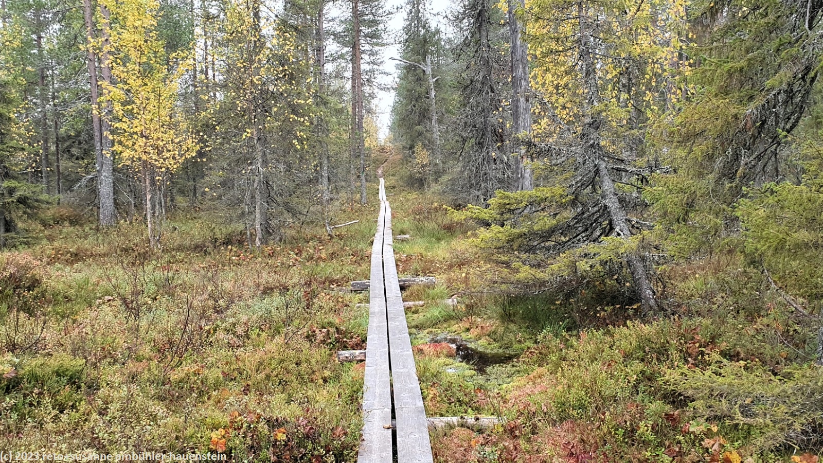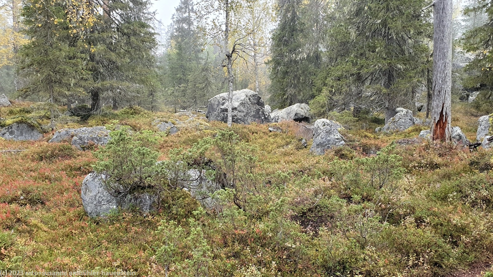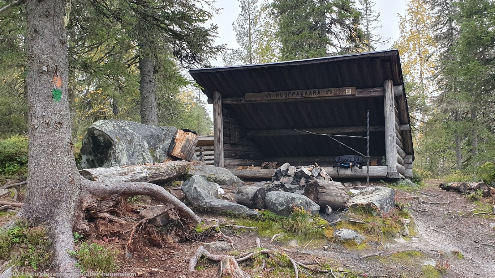 obwohl es heute morgen deutlich weniger kalt ist als gestern, frühstücken wir trotzdem im jogi. um 10:30 uhr fahren wir zum nahen hotel kirintövaara. unsere heutige wanderung ist eine kombination der beiden wege kirinmatala und kirinkuoppa. diese folgen weitgehend dem riisitunturin reitti mit kleinen abstechern. der pfad führt durch einen wunderschönen, herbstlichen wald. nachdem wir den matalavaara umrundet haben, picknicken wir in der kuoppavaaran laavu. über den kuoppavaara kehren wir zum ausgangspunkt zurück. wir fahren nach posio um lebensmittel einzukaufen. zurück auf dem campingplatz geniessen wir einen tee und einen berliner. nach dem abendessen planen wir erst die nächsten tage, dann liest meine frau, ich führe die bücher nach.