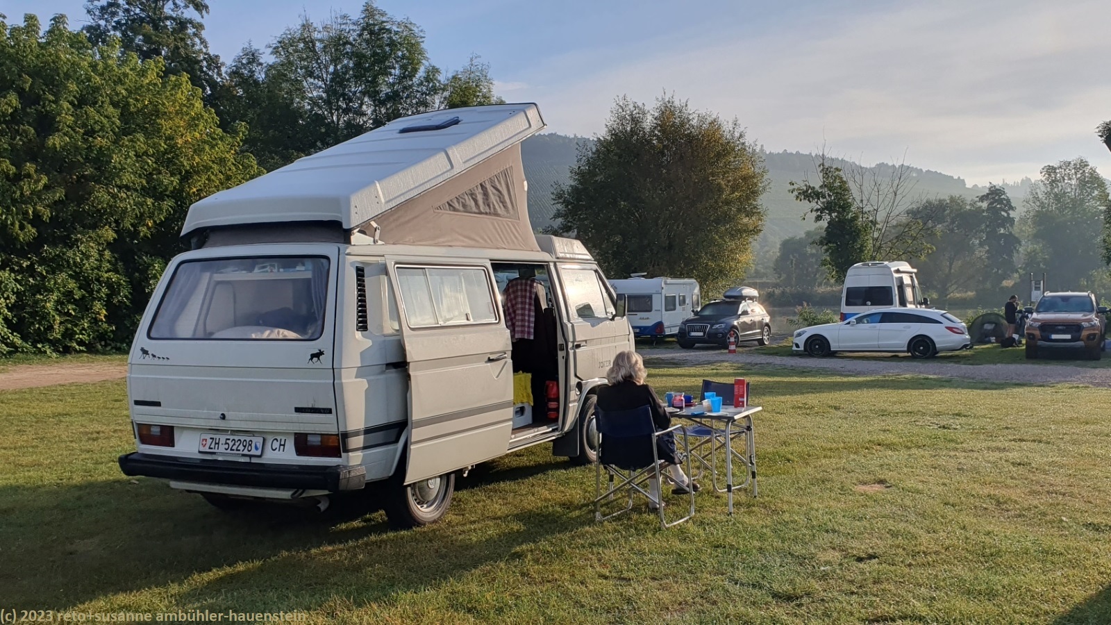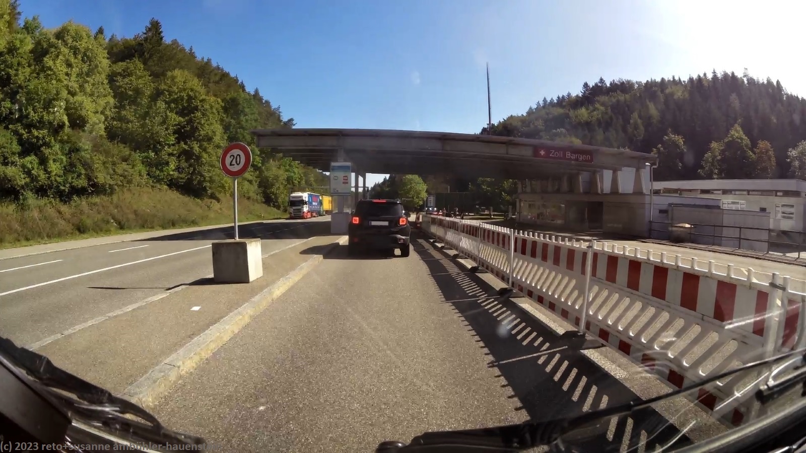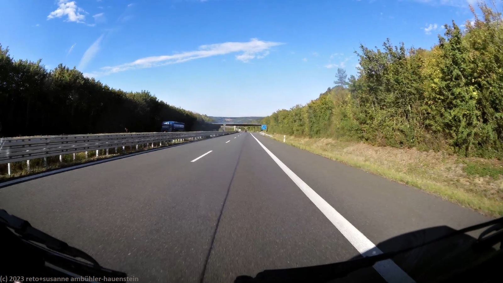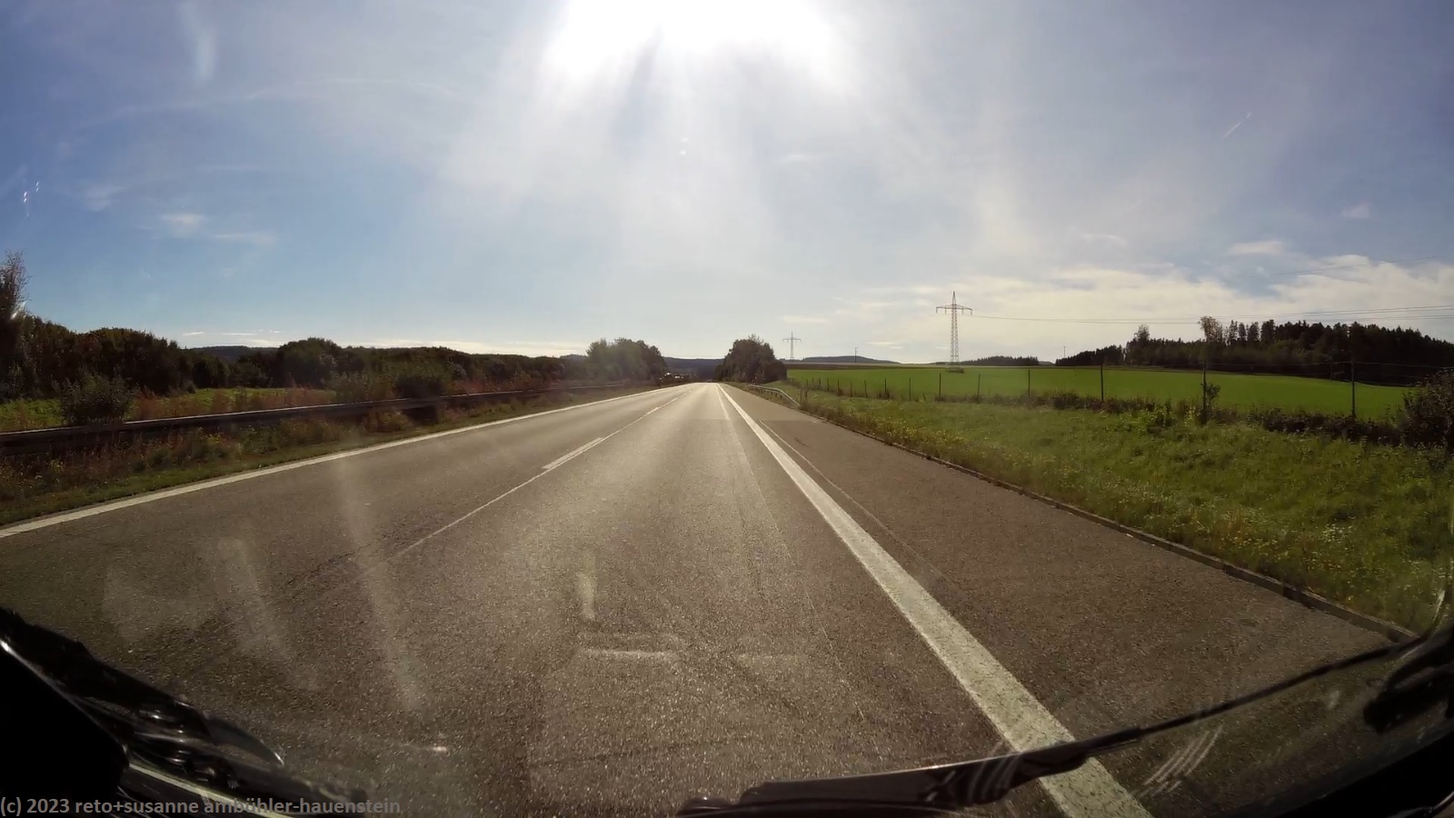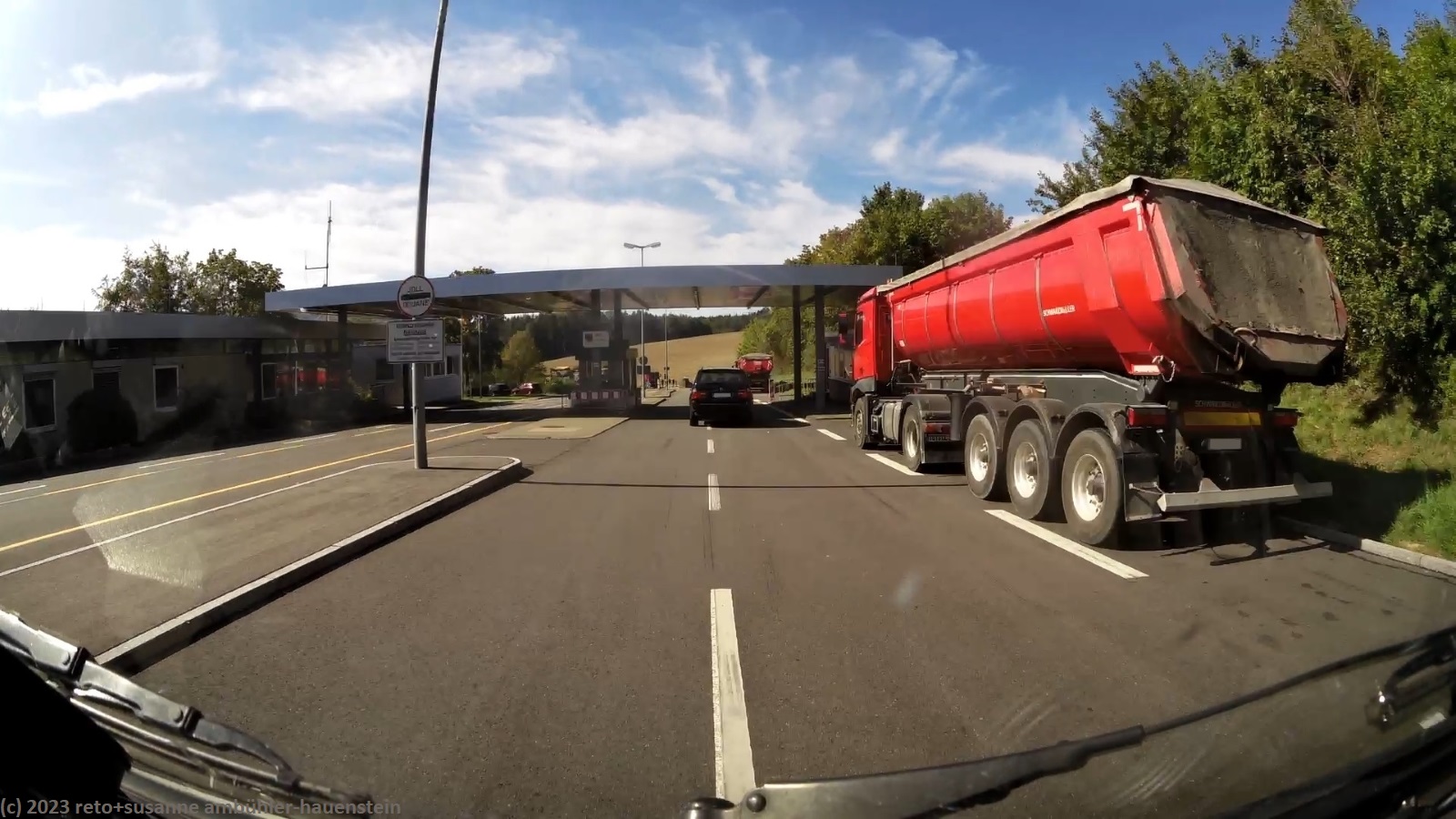 kurz vor 10 uhr nehmen wir die letzten kilometer dieser langen reise unter die räder. bevor wir in der stadt auf die B19 einfahren, tanken wir unseren wagen auf. schon bald sind wir auf der A3. das verkehrsaufkommen ist gering, wie in deutschland üblich sind vor allem lastwagen unterwegs. nach 7 km wechseln wir auf die A81 und fahren auf dieser südwärts. vor einem jahr war diese ausfahrt gesperrt und wir mussten über die landstrasse fahren, siehe tagebuch vom 14-aug-2022. auch hier ist das verkehrsaufkommen gering und die fahrt geht im eigenen tempo vorwärts. ab und zu hat es eine baustelle mit fahrbahn-reduktion oder -verengung, aber wir geraten nie in einen stau. einzig die komischen verkehrsmeldungen unserer navis sind etwas irritierend. sie behaupten hartnäckig, die A7 sei in unserem streckenverlauf gesperrt. nichts davon ist wahr, es läuft wie am schnürchen. in der weiteren umgebung von stuttgart sind einige ganz schnelle fahrzeuge unterwegs, aber auch das sind wir uns gewohnt. wir haben schon mehr schnellfahrer gesehen als heute. einige kilometer nach villingen-schwenningen will das navi auf die A864. unglücklicherweise folge ich diesem routenvorschlag und so geht es auf der erst vier- und dann zweispurigen B27 richtung landesgrenze. die landschaft ist allerdings sehr lieblich und der grenzübergang bei randen ist unbesetzt, so gelangen wir auch ganz locker in die schweiz. die ersparnis von 6 km gegenüber der fahrt über die autobahn hat sich wohl kaum gelohnt, aber so haben wir eine gegend gesehen, in der wir vorher meines wissens noch nie waren. ab schaffhausen geht es dann den gewohnten weg via winterthur ins zürcher oberland.