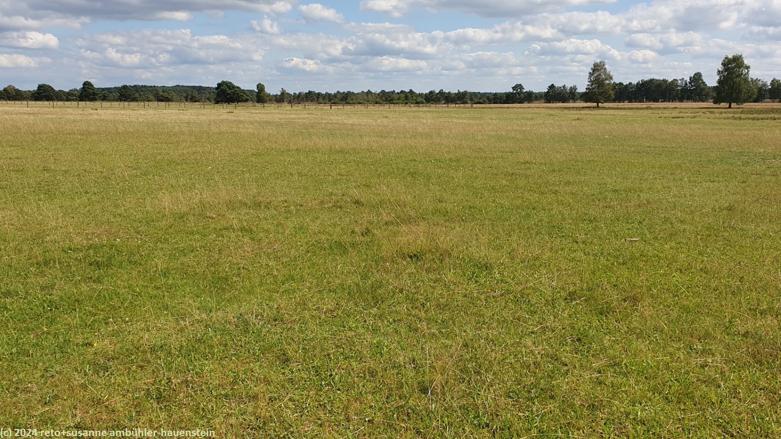 obwohl es in der nacht kräftig regnet schlafen wir bestens. wir stehen um 08:30 uhr auf und kaufen beim bauernhof auf der anderen strassenseite heidelbeeren für's frühstück. gegen 10:45 uhr fahren wir nach schneverdingen, wo wir erst einkaufen gehen und dann unseren wagen beim heidegarten parkieren. wir wandern durch einen schönen wald bis zum stattlichen haus des atelier de bruycker. ganz in der nähe sehen wir einen hirten mit seiner schafherde. wir überqueren erst die landstrasse L171 und gelangen wenig später durch eine bahnunterfühung in das naturschutzgebiet lüneburger heide. über offenes heideland wandern wir bis zum sylvestersee, wo wir auf einer sitzbank zu mittag essen. über breite wanderwege erreichen wir um 15:15 uhr den schäferhof. auf dessen gartenterrasse geniessen wir kaffee und kuchen. bevor wir den rückweg zum heidegarten unter die füsse nehmen, wandern wir über den pietzmoor moorrundweg. dieser führt uns durch eine wunderschöne moorlandschaft. von schneverdingen fahren wir zurück zum campingplatz. das nachtessen können wir bei sonnenschein im freien geniessen. nach einem gemütlichen abend schlüpfen wir noch vor 23 uhr unter die bettdecke.