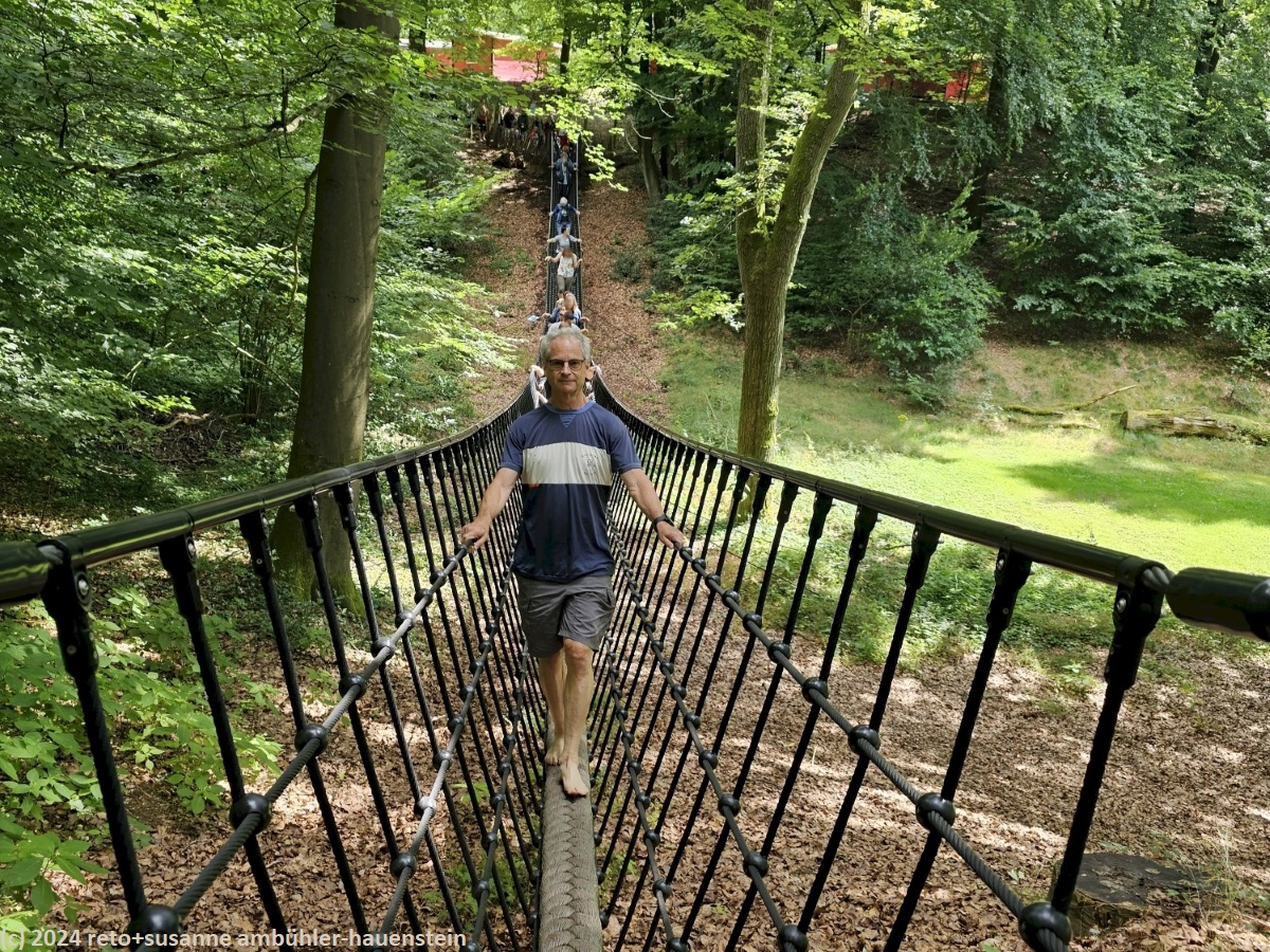 haengebruecke im barfusspark bei egestorf reto geht ueber haengebruecke im barfusspark bei egestorf