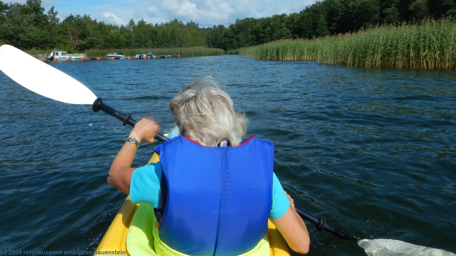 auf dem weiteren weg nach nagu müssen wir immer wieder gegen wind und wellen kämpfen. erst rudern wir nordwärts durch den anisor fjärden und anschliessend durch den biskopsö strömmen. dabei unterqueren wir die strasse 180. im raggfjärden wenden wir uns westwärts und paddeln wenig später erneut unter der strasse 180 hindurch. es scheint uns, es dauert ewig, bis wir endlich die schmale durchfahrt zwischen den inseln betesnäs und ernholm erreichen. wenig später geht es erst in den korssundet und dann in den kanal durch den ort nagu. diese passage ist recht spektakulär. links und rechts der wasserstrasse hat es ausgedehnte schilfgürtel.