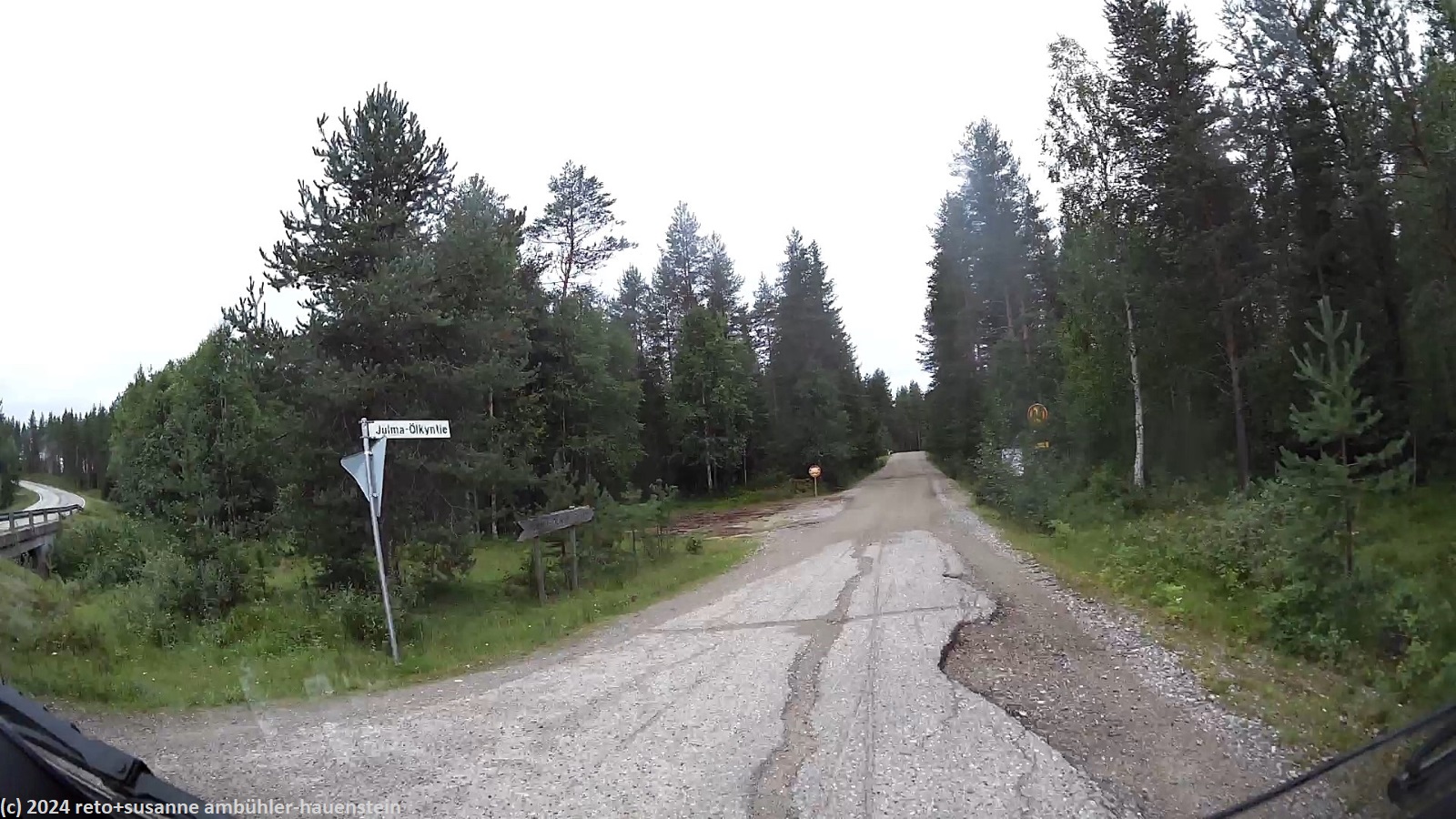 wir trinken einen kaffee und geniessen eine zimtschnecke beim kiosk. erstaunlicherweise sind wir die einzigen gäste. unterwegs sind uns ab und zu leute begegnet und auch auf dem parkplatz stehen einige autos. bevor wir zum jogi zurückkehren, schauen wir uns die stelle an, wo kanus und kajaks in den ala-ölkky gelassen werden. für die boote gibt es eine längere "rutschbahn", über welche erstere zum ufer hinunter gezogen werden können. eine äusserst raffinierte einrichtung. über die unbefestigte julma-ölkyntie und die landstrasse 843 fahren wir zum campingplatz zurück.