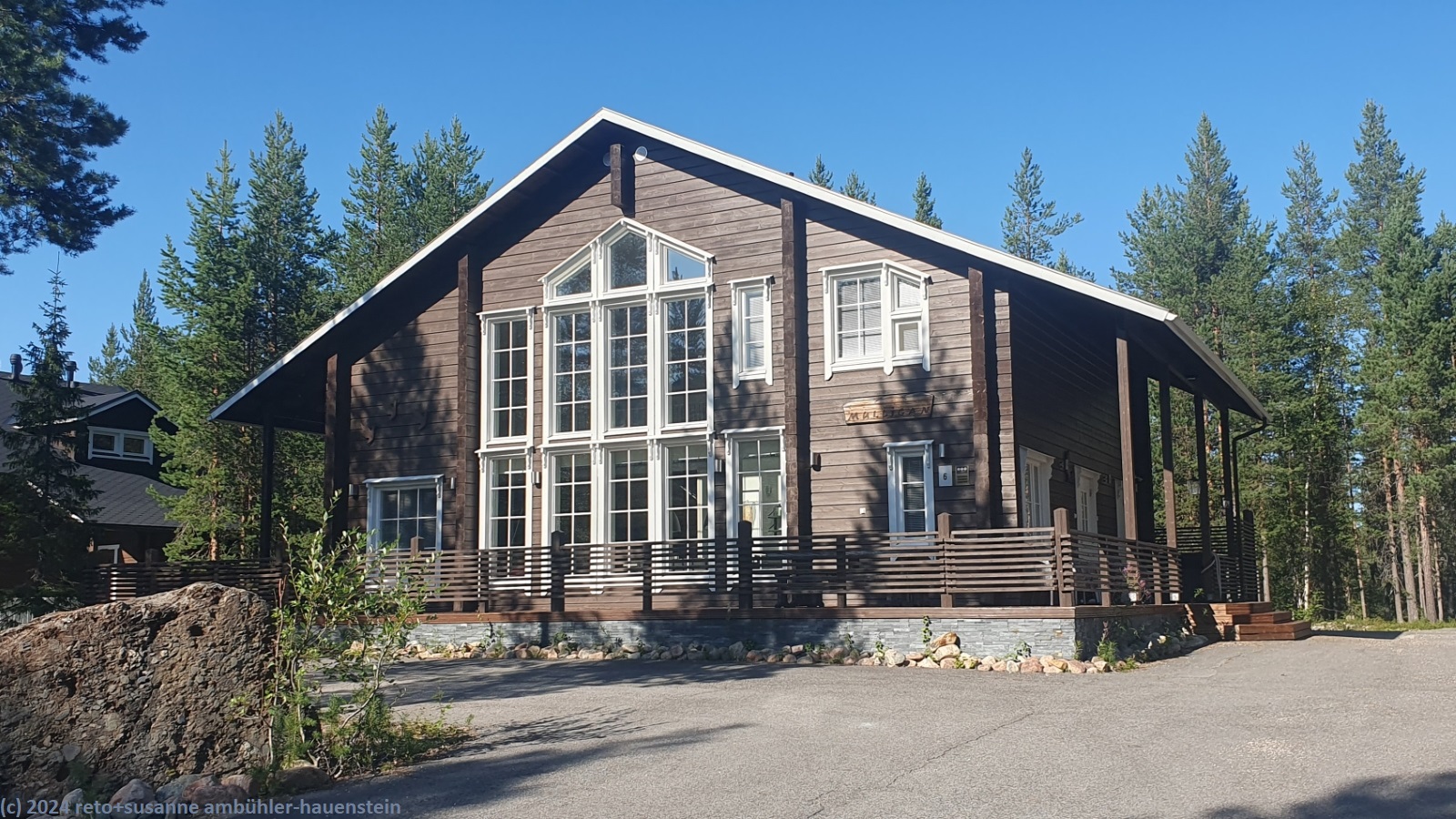 wir stehen gegen 08:45 uhr auf. der himmel ist wolkenlos, es ist deutlich wärmer als in hossa. entsprechend frühstücken wir im t-shirt und kurzen hosen im freien. da wir noch nichts vom flughafen kittilä gehört haben, entschliessen wir uns, die schmutzige wäsche zu waschen. während die maschine wäscht, spazieren wir durch den ort und kaufen im supermarkt einige lebensmittel. zurück auf dem campingplatz kümmert sich susanne um unsere wäsche, ich arbeite am computer. gegen mittag unterhalte ich mich mit hermann via skype. danach essen wir eine kleinigkeit. während wir beim frühstücken noch versucht haben, ein bisschen morgensonne zu erwischen, suchen wir nun schatten. die temperatur steigt im laufe des nachmittages bis auf 25°C. wir machen einen etwas ausgedehnteren spaziergang als am morgen. zuerst setzen wir uns aber ins cafe an der hauptgasse und geniessen kaffee und kuchen. plötzlich taucht ein mächtiges rentier auf. es stolziert unbekümmert mitten durch den ort.