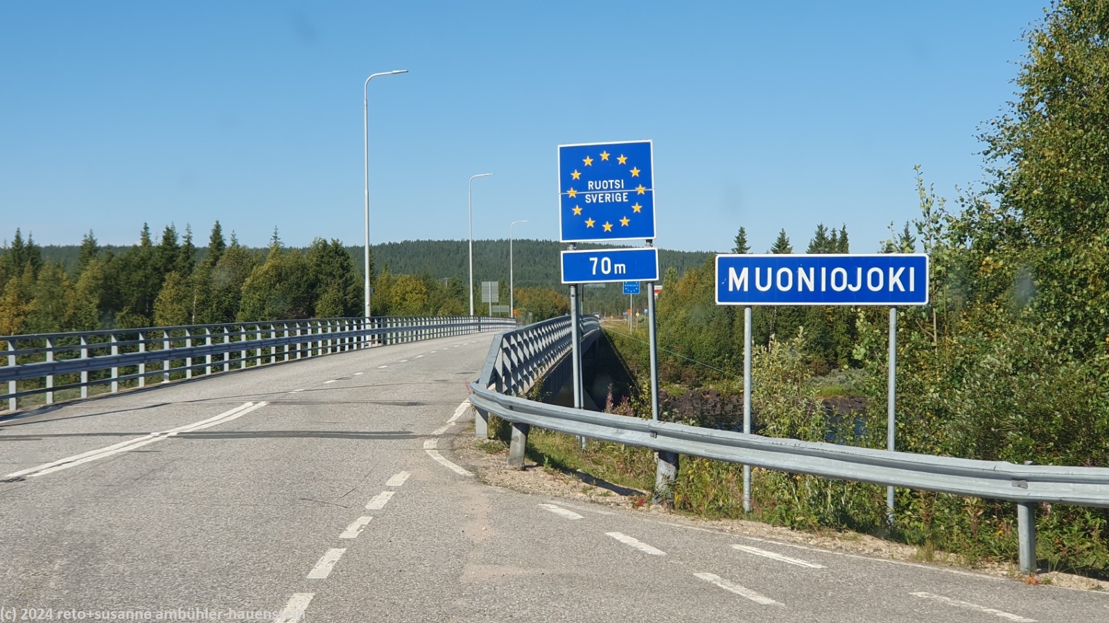 strasse 79 entlang des aekaesjaervi strasse 404 ueber den muoniojoki und damit ueber die grenze zwischen finnland und schweden