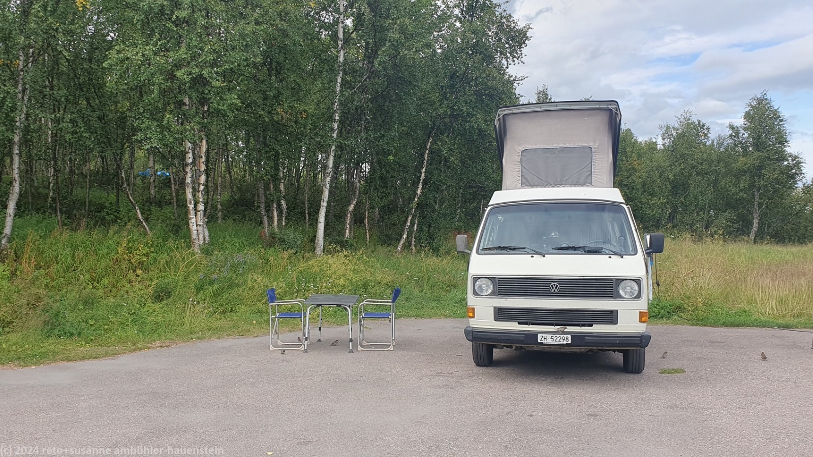 hier hat es deutlich mehr gäste als in levi. vorallem hat es dutzende kleiner zelte. offenbar ist hier irgend ein treffen, denn beim empfang gibt es einen separaten schalter für gäste mit zelt. wir schreiben uns für zwei nächte ein, danach organisieren wir im aufenthaltsraum fahrkarten für übermorgen. wir werden am samstag mit unserem jogi nach nikkaluokta fahren und ihn dort während unserer mehrtageswanderung über den nördlichsten abschnitt des nördlichen kungsleden stehen lassen. mit dem bus werden wir dann nach kiruna zurückfahren, ab da geht es anschliessend mit dem zug nach abisko. nachdem wir das erledigt haben, packen wir im jogi die kleider für die wanderung in drybags. anschliessend liest susanne, ich führe die bücher nach. bei einem besuch beim empfang klärt sich das phänomen der vielen zelte: ab morgen findet hier das fjällräven classic schweden statt. fjällräven classic finden weltweit an sieben verschiedenen orten statt, einer davon ist eben schweden. fjällräven classic schweden ist eine 3-7 tageswanderung von nikkaluokta nach abisko, also genau unsere strecke, einfach in umgekehrter richtung. der lauf beginnt morgen, starten kann man aber auch übermorgen oder am sonntag. dies bedeutet, die teilnehmerInnen sind zur gleichen zeit unterwegs wie wir, details siehe fjällräven classic. wir werden daher in den nächsten tagen den meisten irgendwo unterwegs begegnen. das ist natürlich suboptimales timing für eine ruhige fjällwanderung. gemäss reglement ist es den teilnehmenden allerdings nicht gestattet, die infrastruktur des STF zu benutzen - mal sehen, ob das klappt. wir hoffen, dass wir zumindest am ersten und während den letzten tage nicht zu viele begegnungen mit den teilnehmenden haben werden. nach dem abendessen im freien mit ein bisschen abendsonne, verbringen wir einen ruhigen abend im jogi. noch vor mitternacht sind wir im bett.