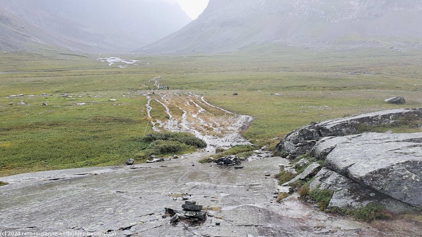 | aufstieg richtung lássajávri | reto und susanne im strömenden regen |