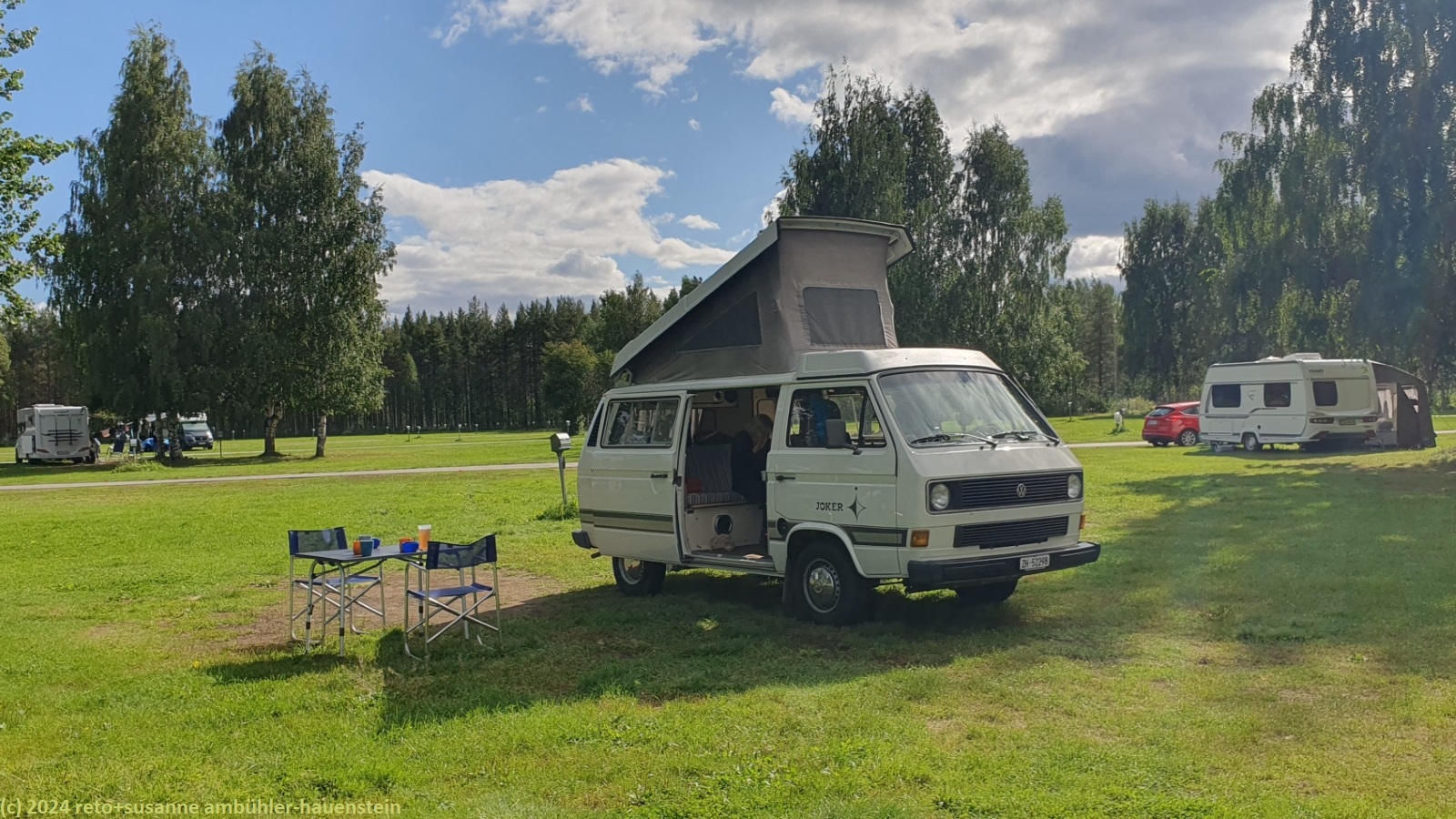 nach dem frühstück fahren wir nach jokkmokk. bei der tourist information bezahlen wir die übernachtung in den drei hütten entlang des padjelanta, welche nicht dem STF gehören. gemäss aussage der dame am schalter, könnte man nun auch direkt vor ort bezahlen, aber wir erledigen das lieber hier. in den hütten ist die internet-verbindung nicht immer gewährleistet und bargeld hätten wir nicht genug, so sind wir auf der sicheren seite. anschliessend kaufen wir im ICA und Coop die fehlenden lebensmittel für die kommende mehrtageswanderung sowie für das heutige nachtessen. leider ist "unsere" bäckerei auch heute geschlossen, offenbar wegen einer sitzung. so müssen wir nochmals in den Coop um auch etwas fürs mittagessen einzukaufen. bevor wir auf den campingplatz zurückkehren, tanken wir unseren wagen auf. wir packen unsere rucksäcke, dazwischen essen wir ein köstliches birchermüesli. den kaffee geniessen wir im restaurant des campingplatzes.