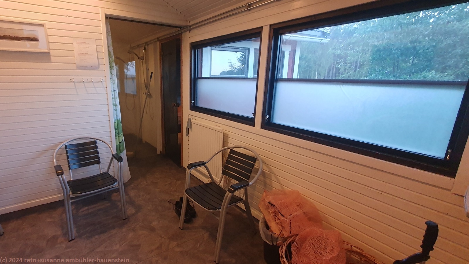 kurz nach 17 uhr sind wir wieder beim jogi. eine stunde später geniessen wir ein leckeres filet im teig. nach dem abwaschen heizen wir die sauna ein, die wir für heute abend gebucht haben. bis sie heiss ist, trinken wir eine tasse kaffee. wir machen zwei erholsame sitzungen, dazwischen kühlen wir uns im lulefjärden ab. in der nähe der sauna hat es einen wunderschönen sandstrand, das wasser ist gar nicht so kalt.