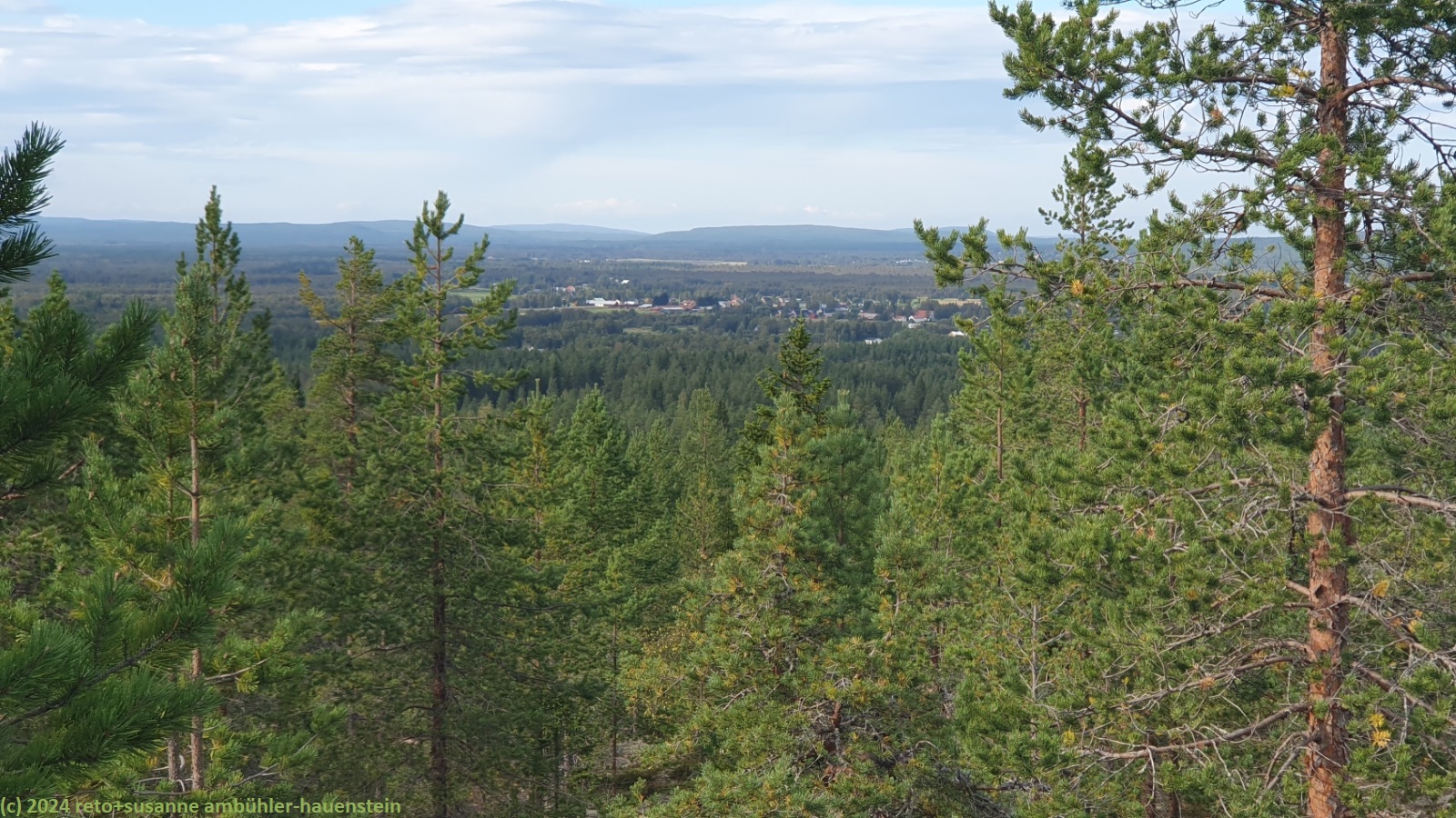 als wir gegen 08:45 uhr aufstehen, werden wir von freundlichem wetter begrüsst. noch vor dem frühstück möchten wir beim kayak-o-mat ein doppelkajak mieten, aber die einrichtung funktioniert nicht. da der kayak-o-mat gemäss website auch nach dem frühstück immer noch ausser betrieb ist, erkundigen wir uns beim empfang des campingplatzes. die dame bemüht sich zwar, hat aber auch keinen erfolg. beim lokalen kajakclub sind erst morgen kajaks verfügbar, wir verschieben daher unsere bootstour auf morgen. stattdessen fahren wir etwa 20 km südwärts und machen eine kurzwanderung auf dem hembergsleden. dies ist eine art lehrpfad mit 22 stationen zum thema wald und das leben in der umgebung. die rundwanderung führt durch einen schönen nadelwald, durch kahlgerodetes gebiet und über den 95 meter hohen hemberget. auf dem rückweg zum campingplatz gehen wir noch einkaufen. bei eher kühlem wetter geniessen wir das nachtessen im freien. während susanne nach polarlichter ausschau hält, arbeite ich im jogi am computer. kurz nach 23 uhr beginnt am nachthimmel ein tolles lichtspektakel.