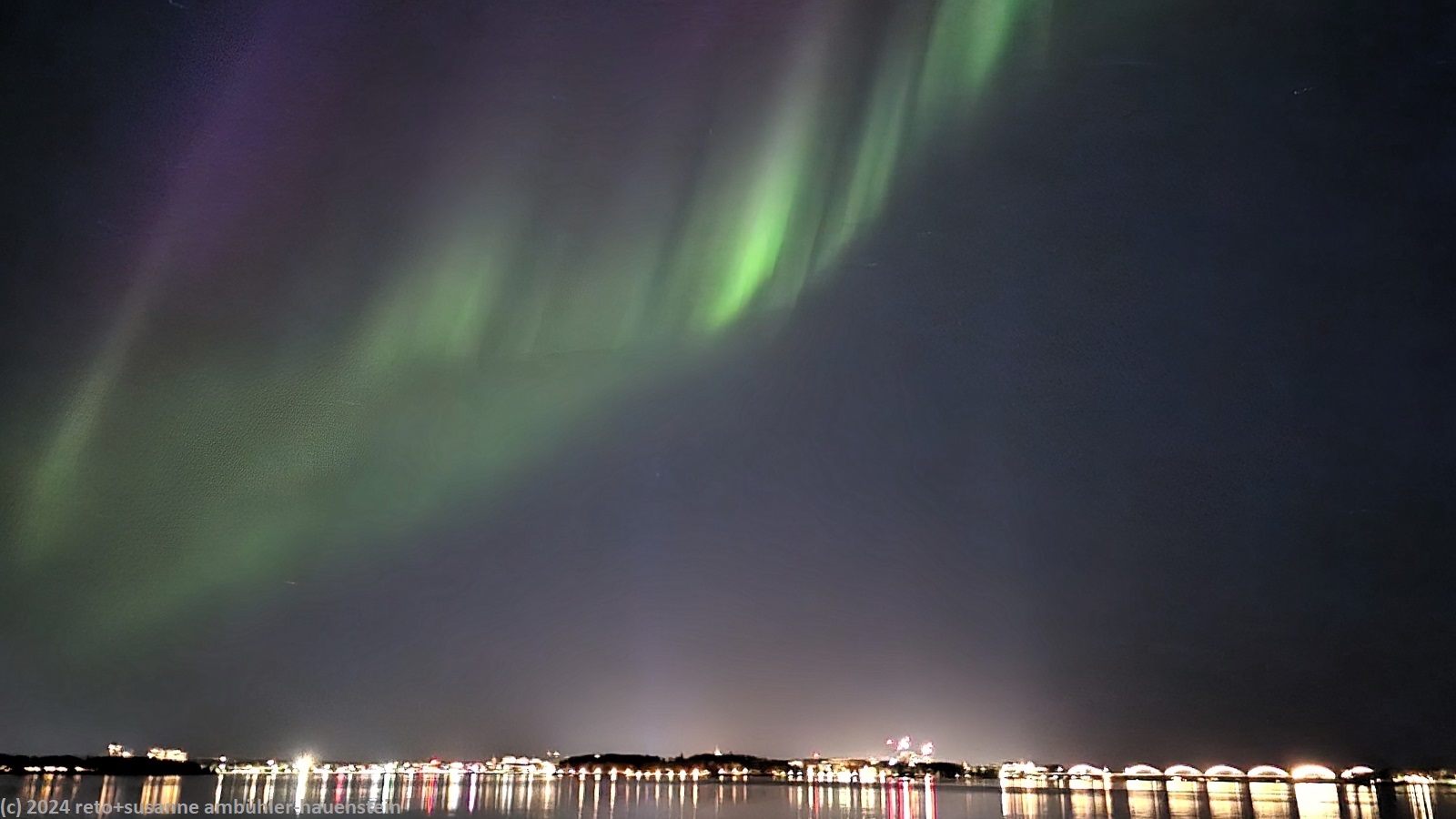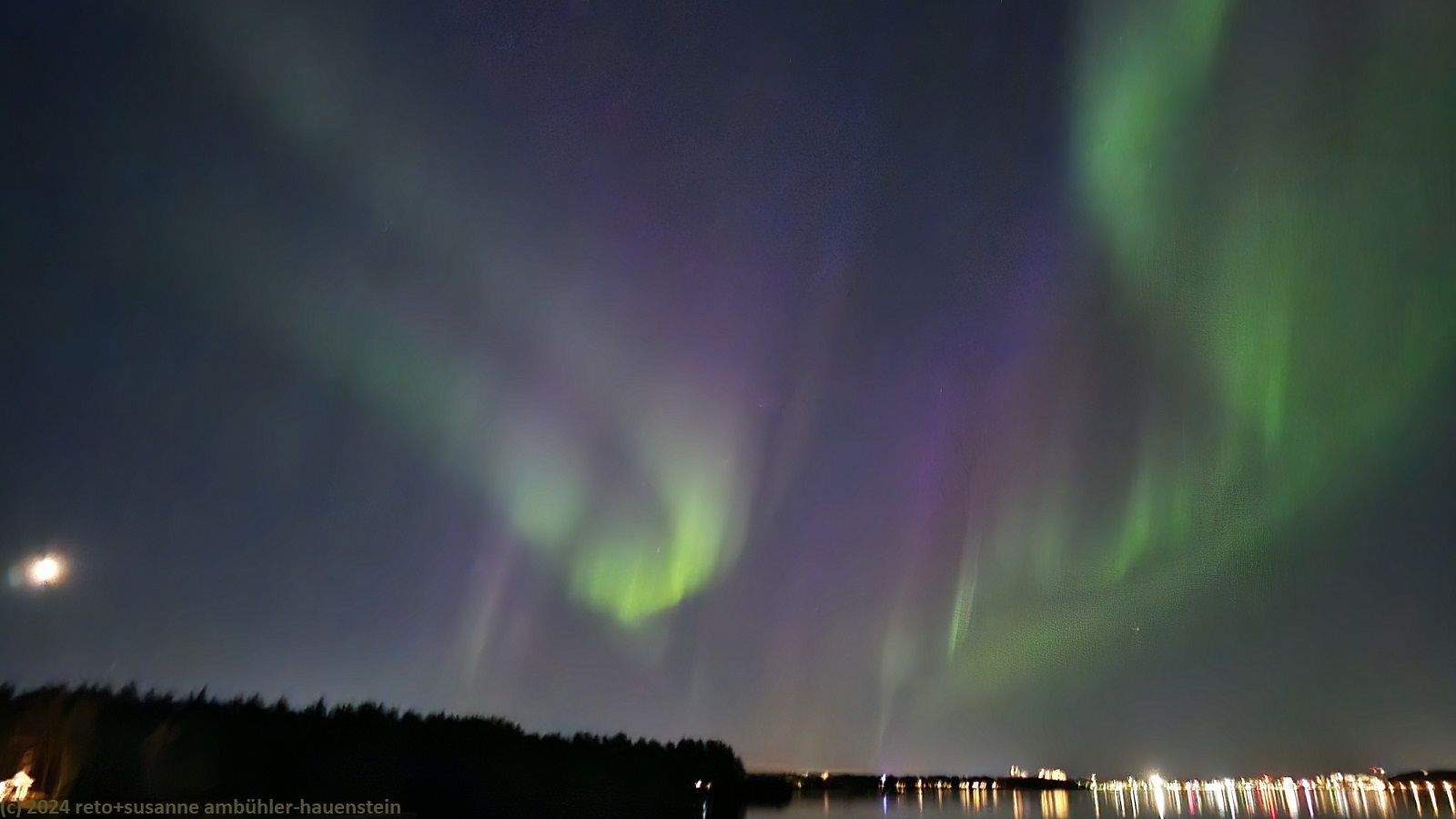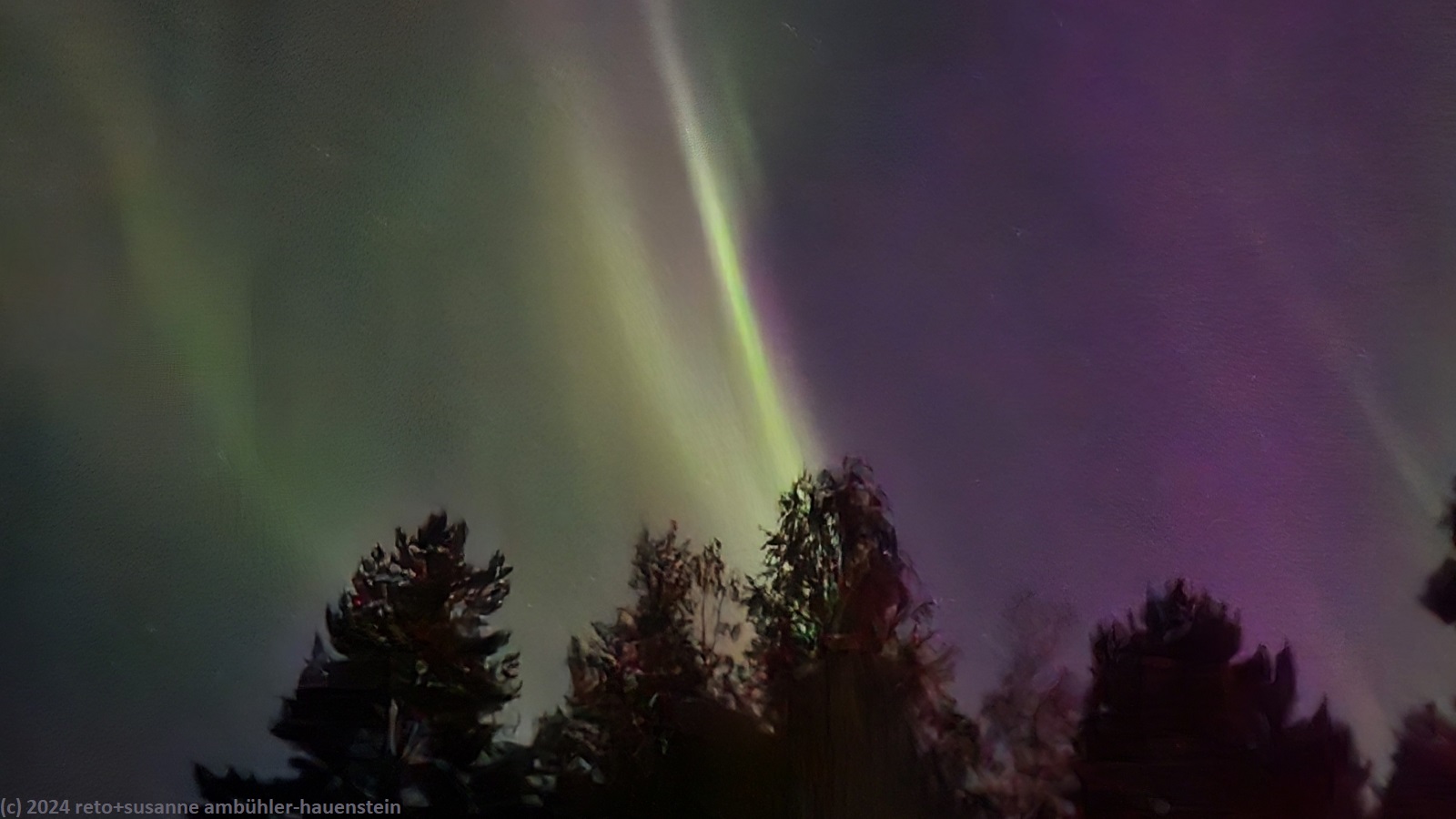 es hat etwas mehr gäste rund um unseren stellplatz. das nachtessen können wir im freien geniessen, auch wenn es ziemlich kühl ist. der himmel ist inzwischen fast wolkenlos. susanne meint, heute müsste es super sein, um polarlichter zu sehen. während sie ausschau hält, arbeite ich im jogi am computer. plötzlich ist am himmel ein gewaltiges lichtspektakel zu sehen.
