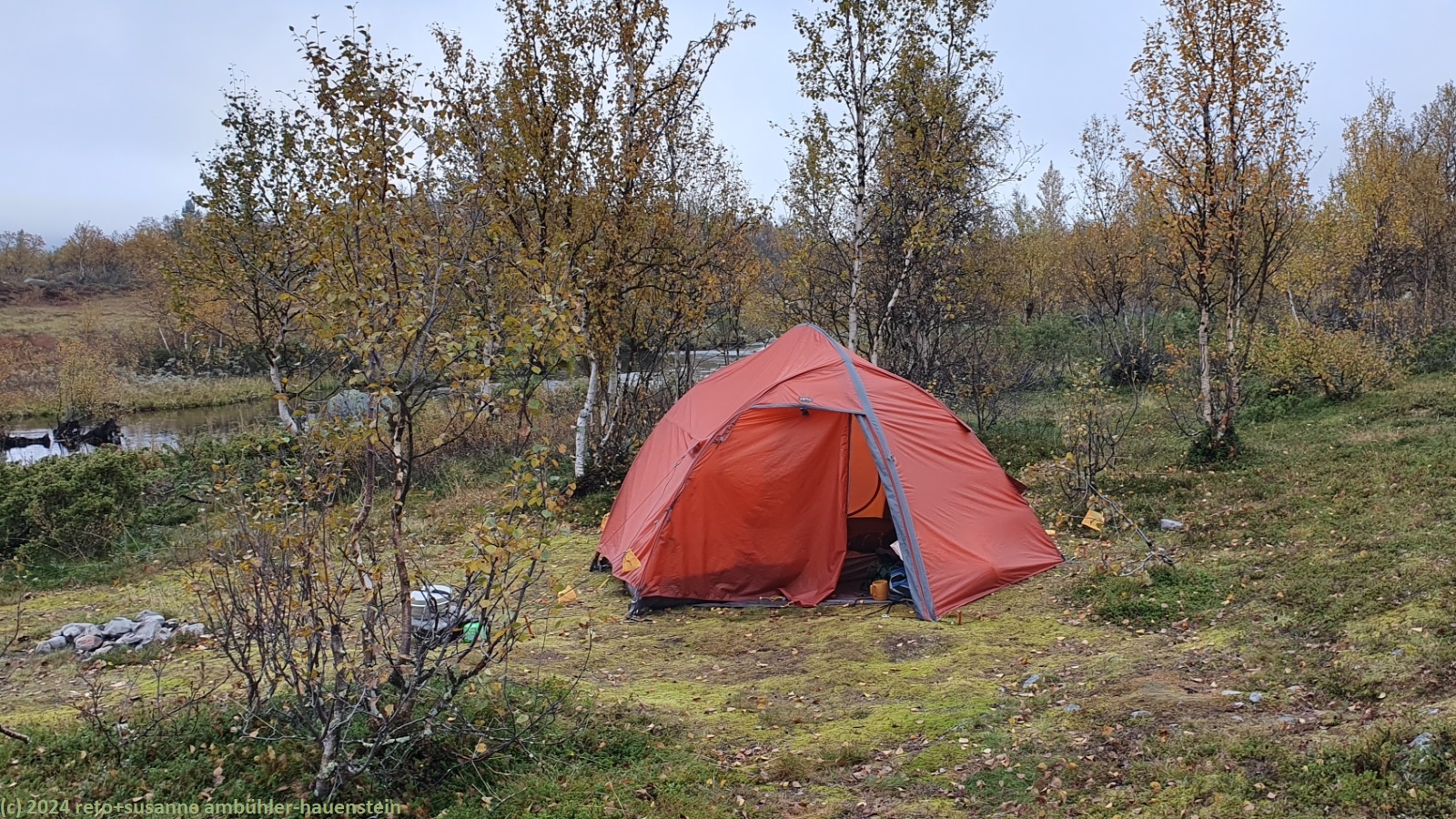 unser zelt am ufer des gaalovenjohke im verlauf des suedlichen kungsleden
