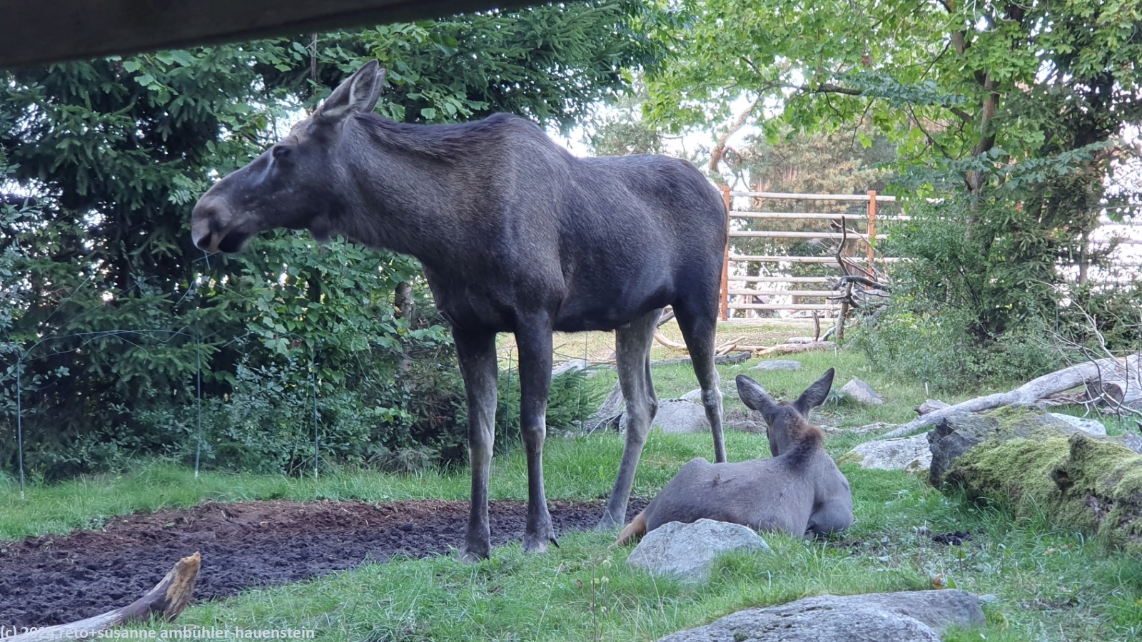 elch  im skansen in stockholm elchkuh mit kalb  im skansen in stockholm