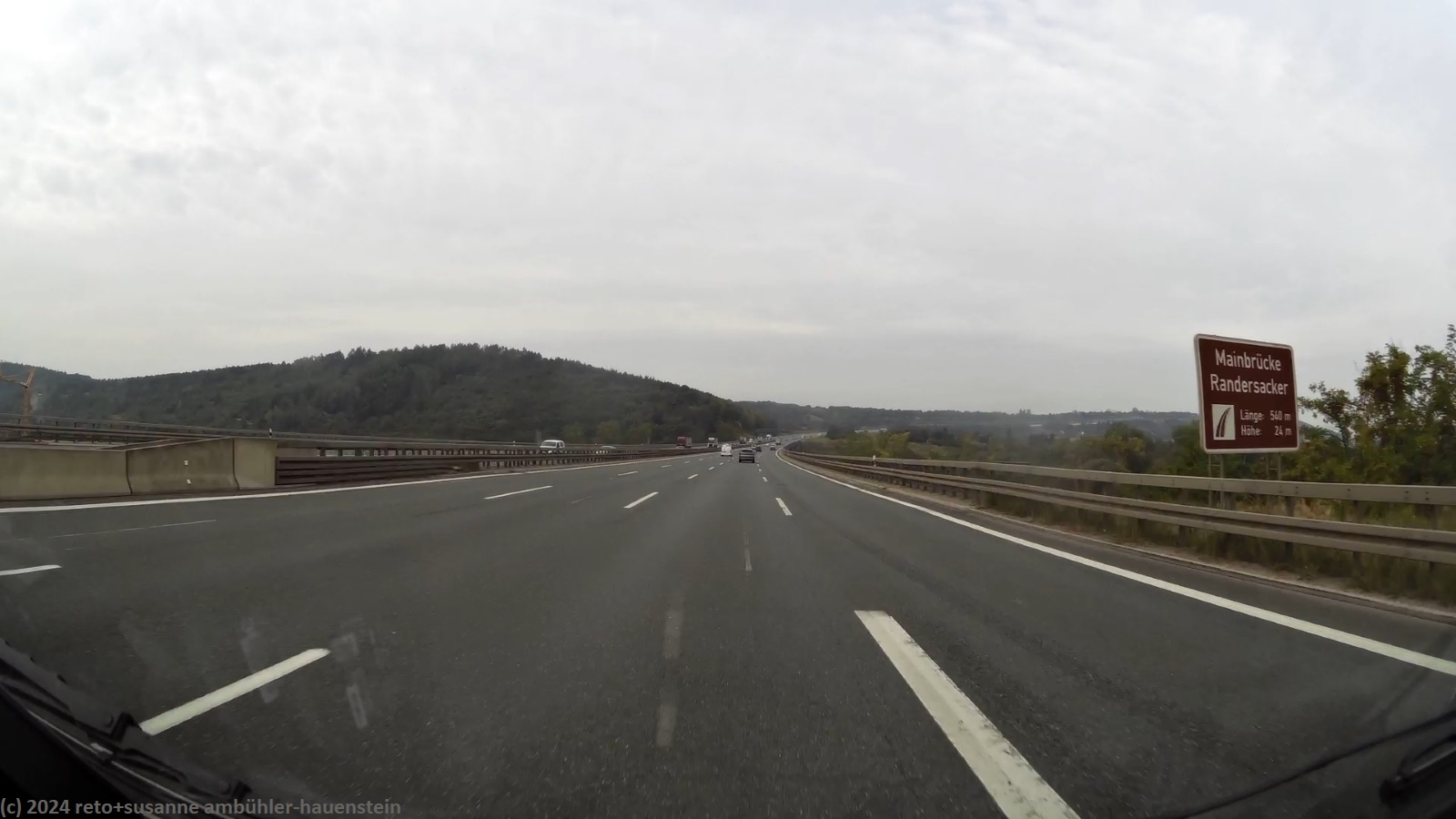 ausfahrt von der A7 zur A3 mainbruecke im verlauf der A3