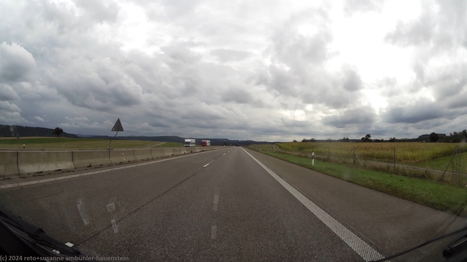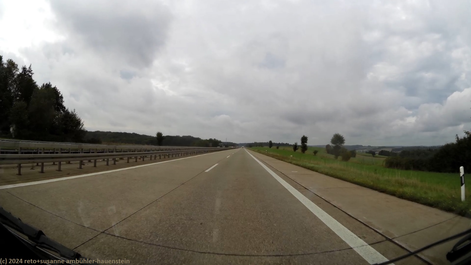 unser handy weckt uns um 07:30 uhr. der himmel ist etwas bedeckt, es ist nicht mehr ganz so warm wie gestern. wir frühstücken im freien. danach packen wir zusammen. um 09:30 uhr verlassen wir den campingplatz. in der nahen tankstelle füllen wir benzin auf, dann geht es über die bundesstrasse 287 zurück auf die A7. wie zu erwarten war, sind nun bedeuten mehr lastwagen unterwegs als am sonntag. trotzdem kommen wir besser voran als gestern. baustellen mit fahrbahnverengung bzw. -reduktion hat es auch heute, aber die staus sind nicht mehr so heftig wie gestern. gelegentlich fallen einige regentropfen. gegen 10:20 uhr wechseln wir auf der höhe von würzburg von der A7 auf die A3. seit der ausbau dieses abschnittes abgeschlossen ist, läuft der verkehr in diesem bereich sehr flüssig. nach einer viertelstunde wechseln wir auf die A81, nun geht es wieder mehr südwärts. kurz nach dem wechsel der autobahn zeigt der kilometerzähler unseres wagens 371000. der verkehr fliesst nun meistens gut, baustellen hat es aber trotzdem immer wieder einmal. um mittag stoppen wir beim rasthof schönbuch-west.