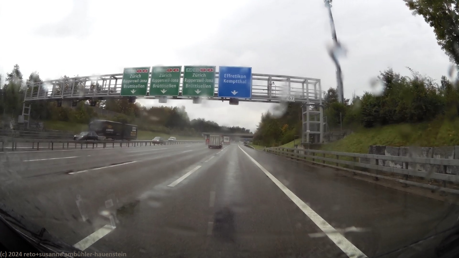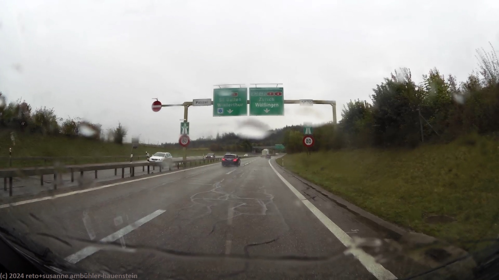 kraeftiger regen auf der A4 kurz vor schaffhausen autobahnkreuz winterthur nord im verlauf der A4