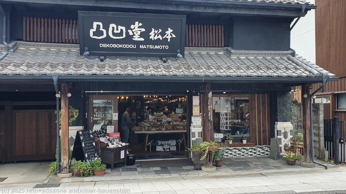 wir stehen um 07:30 uhr auf und frühstücken in der gemeinschaftsküche. zwei stunden später machen wir uns auf den weg richtung matsumoto. anfangs verläuft die fahrt sehr flüssig, aber auf der strasse 158 verursacht ein schleicher eine lange kolonne und verzögert die fahrt sehr unnötig. auch in der stadt matsumoto herrscht ein verkehrschaos. mit etwas geduld erhaschen wir einen parkplatz beim schloss. wir spazieren erst durch den schlossgarten und machen uns danach auf den weg zur einkaufsstrasse nakamachi dori mit ihren kunsthandwerkgeschäfter. nach einigem hin und her einigen wir uns, in der panateria zu mittag zu essen. um 13:30 uhr machen wir uns wieder auf den weg. ungeschickterweise verpasse ich beim ersten versuch die einfahrt zur E19 und so fahren wir einmal im kreis, bis wir endlich auf der autobahn sind. nun entspannt sich die situation und wir rollen zufrieden südwärts. bei achi wendet sich die strasse westwärts und wir durchfahren den mount amikake in einem endlos scheinenden tunnel. um 15:30 uhr erreichen wir unser tagesziel nakatsugawa. wir tun uns etwas schwer, den eingang zur unterkunft zu finden. diese ist unbedient, die zugangcodes haben wir per email erhalten. wir beschaffen uns beim besucherzentrum informationen zur morgigen wanderung und kaufen im riesigen einkaufszentrum valor ein. susanne kocht in der gemeinschaftsküche unserer unterkunft ein köstliches nachtessen, danach plant sie die morgige wanderung, ich führe die bücher nach. gegen 23 uhr sind wir im bett.