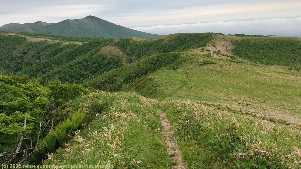 nach dem frühstück fahren wir zum nahen lake mashu observation deck no. 1. von der aussichtsplattform haben wir frei sicht auf den lake mashu im osten, aber das tal südwestlich liegt unter einer dicken nebeldecke. um 10:15 uhr starten wir zu unserer wanderung richtung mount mashu. der schöne wanderweg ist einfach zu begehen und führt durch eine abwechslungsreiche landschaft. der letzte aufstieg zum gipfel des 857 m hohen mount mashu entpuppt sich als kleine herausforderung. er ist sehr steil und der pfad führt über wurzeln und gesteinsbrocken. vom gipfel haben wir eine fantastische rundsicht. das wetter ist freundlicher geworden, wir sehen nun auch den lake kussharo. es geht allerdings ein kräftiger wind. wir picknicken trotzdem auf dem gipfel. auf dem rückweg zum ausgangspunkt zeigt sich nun öfters die sonne. aber als wir beim parkplatz ankommen, hat das wetter wieder umgeschlagen. wir trinken einen kaffee und folgen dann der passstrasse nordwärts. das wetter ist am nachmittag trüb. wir besuchen erst das kawayu visitor center, danach reinigen und wärmen wir uns im onsen des kawayu kanko hotel. kurz nach 18 uhr sind wir wieder auf dem campingplatz. wir geniessen das nachtessen, danach planen wir die route für morgen. gegen 23 uhr schlüpfen wir in unsere schlafsäcke.